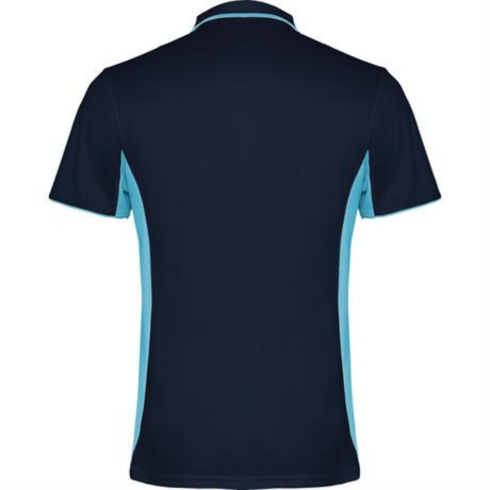 Спортивная футболка поло с короткими рукавами, специально предназначенная для занятий спортом. С сочетанием двух цветов. Воротник с застежкой на пуговицы, закрытыми швами и контрастной планкой. Дышащая ткань, легко стирается и быстро сохнет. *Съемная этик