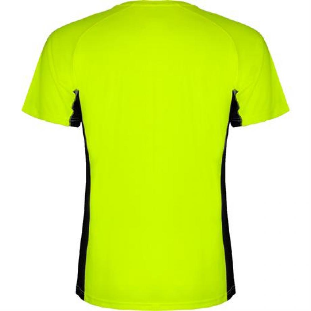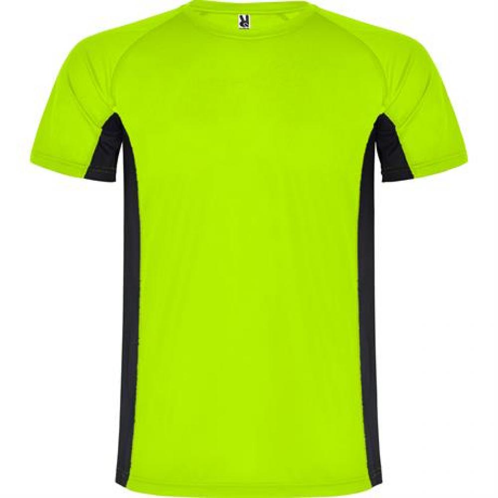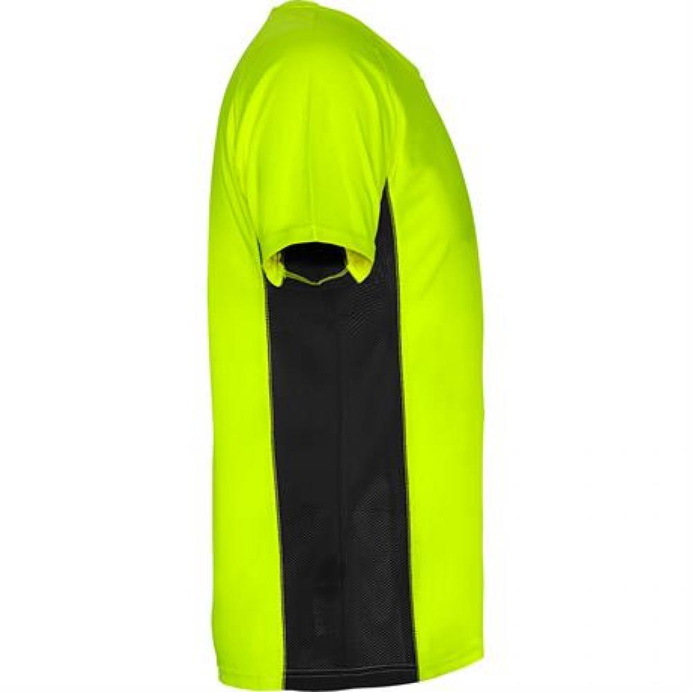 Спортивная футболка с короткими рукавами реглан, изготовленная из двух комбинированных тканей из полиэстера. Основная ткань — ткань bird's eye, а боковые вставки и рукав с внутренней стороны — с микроперфорированной ткани. Круглая горловина с усиленными
