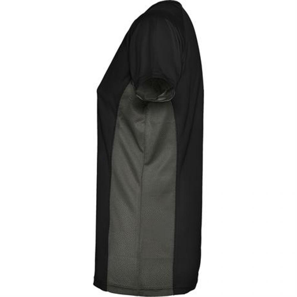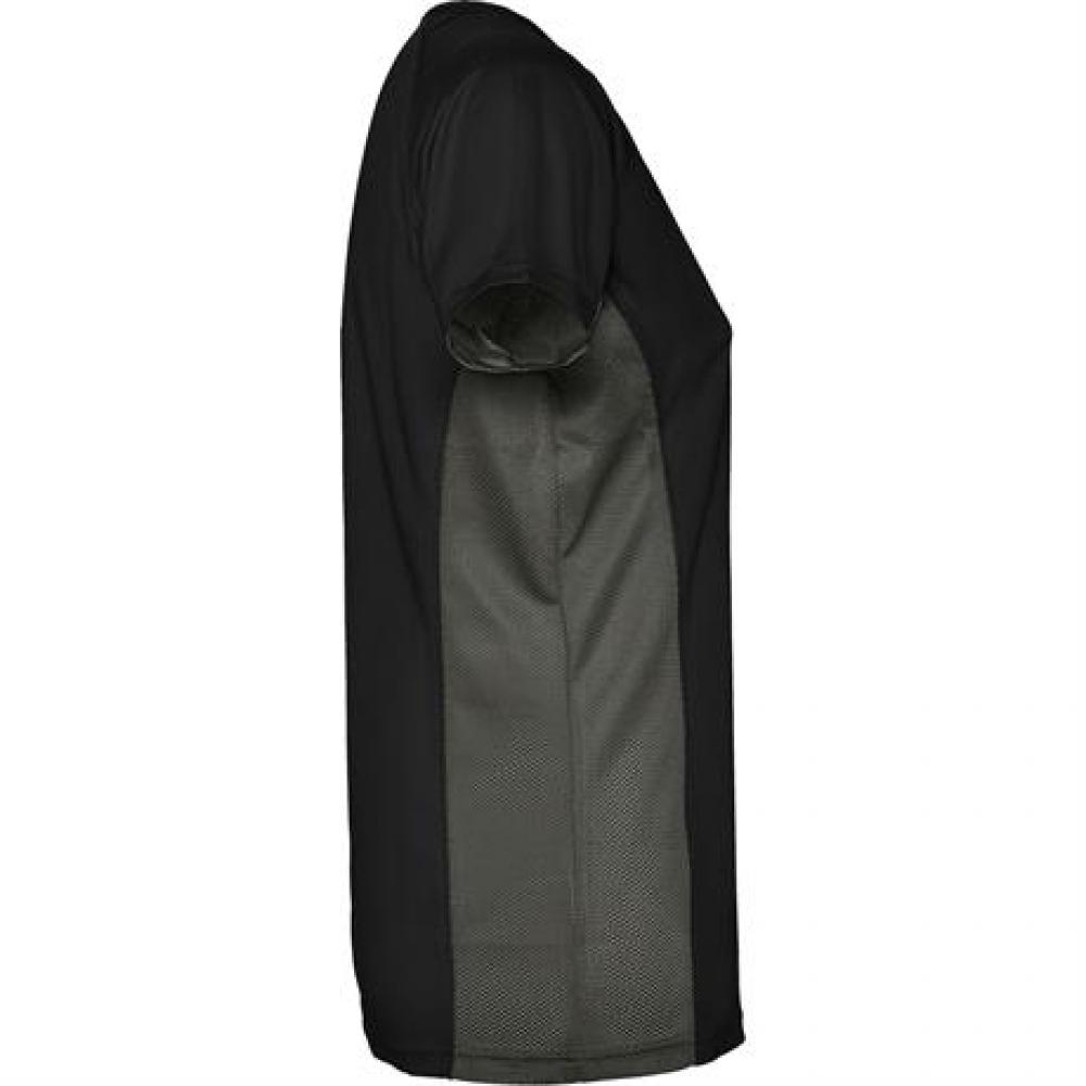 Спортивная футболка с короткими рукавами реглан, изготовленная из двух комбинированных тканей из полиэстера. Основная ткань — ткань bird's eye, а боковые вставки и рукав с внутренней стороны — с микроперфорированной ткани. Круглая горловина с усиленными