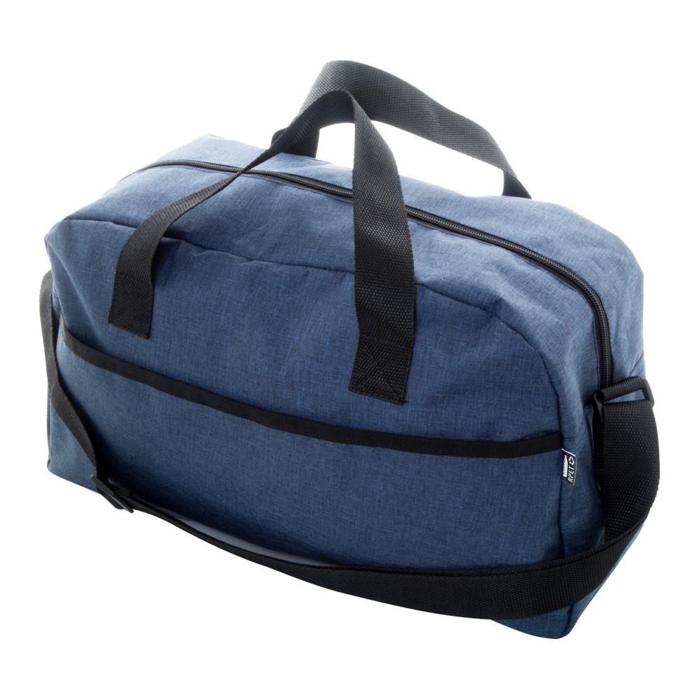 Спортивная сумка RPET с передним карманом, застежкой на молнии и регулируемым плечевым ремнем. Изготовлена из 600D RPET полиэстера с характерной этикеткой RPET.