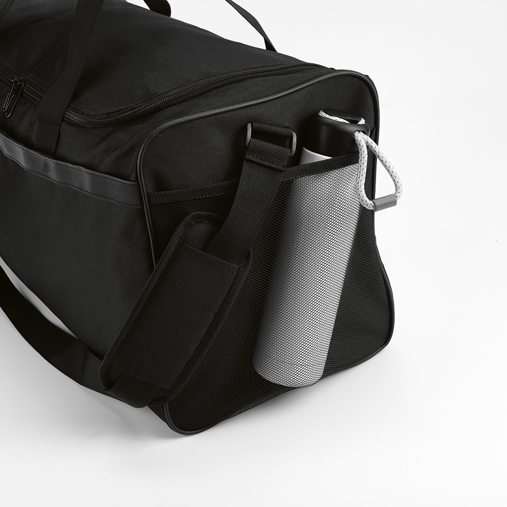 Раскройте свой активный образ жизни с нашей водонепроницаемой спортивной сумкой из 600D rPET. Объемом 50 литров, она оснащена регулируемыми утепленными лямками, отражающими черными деталями и боковыми карманами. Все упаковано в переработанный полиэтиленовый пакет PE.