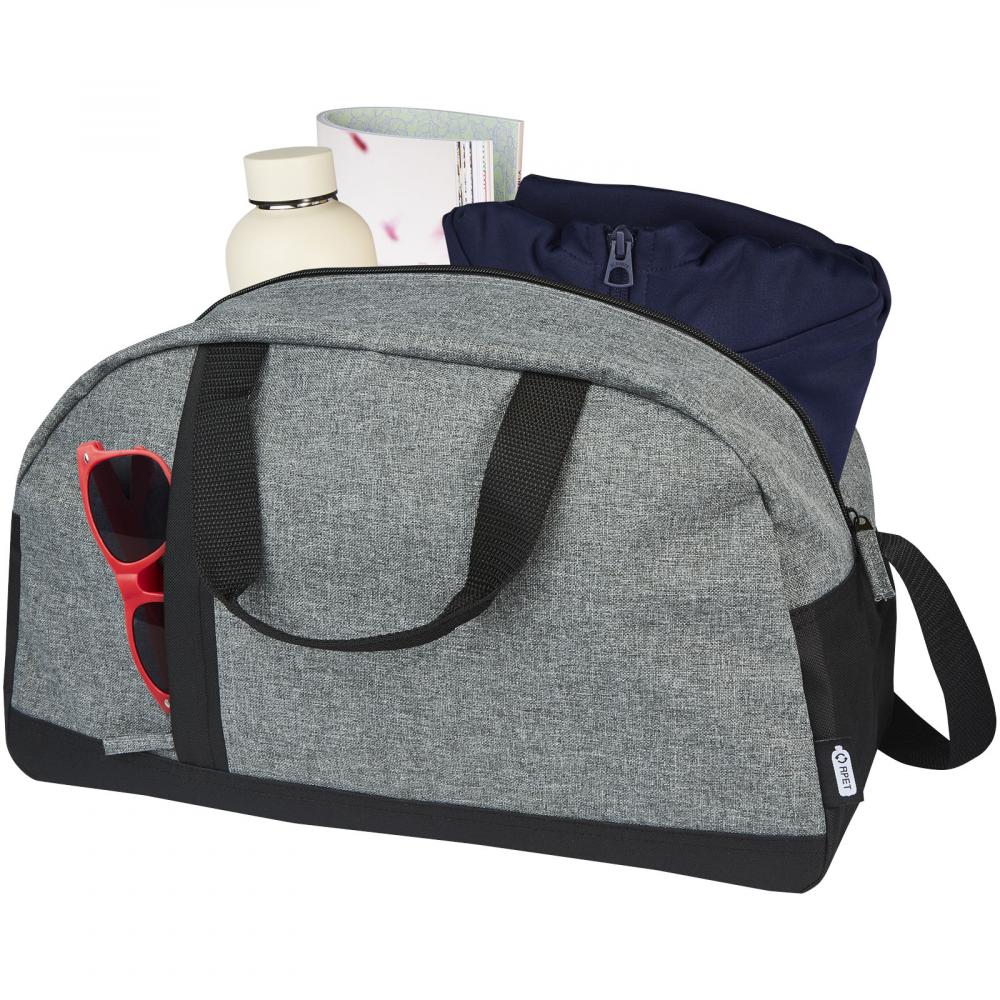 Спортивная сумка Reclaim GRS из переработанных материалов с двухцветным дизайном изготовлена из 100% переработанных материалов снаружи. Она оснащена вертикальным карманом на молнии спереди и просторным основным отделением на молнии. Для удобства переноски предусмотрены ручки с обмоткой из ленты и регулируемые плечевые ремни, что делает её подходящей для спортивных мероприятий.