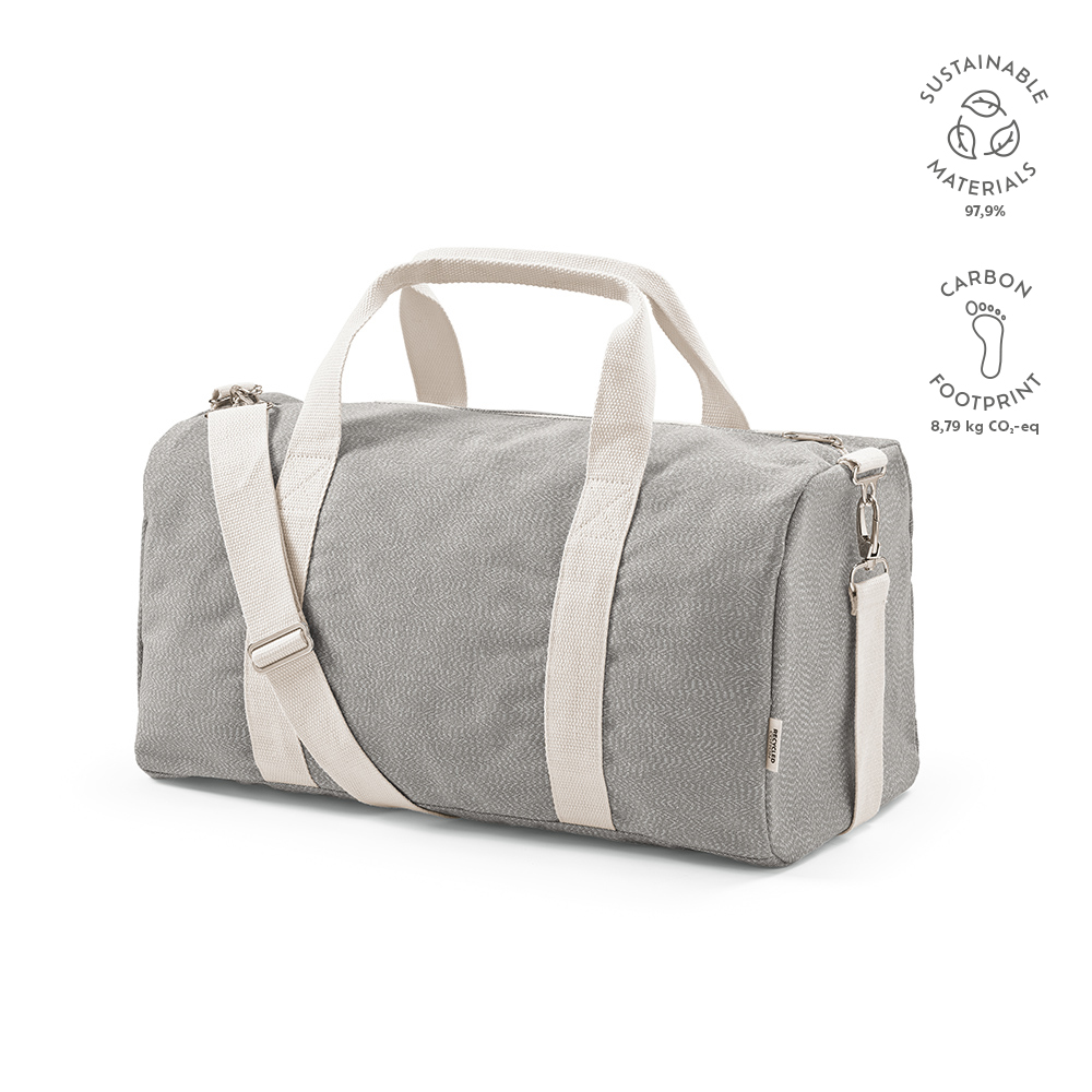 Ощутите практичную роскошь с нашей спортивной сумкой объемом 30 литров, выполненной из смеси переработанного хлопка (75%) и rPET (25%), с карабинами для плечевого ремня и внутренним слоем из rPET. Все упаковано в переработанный полиэтиленовый пакет PE.