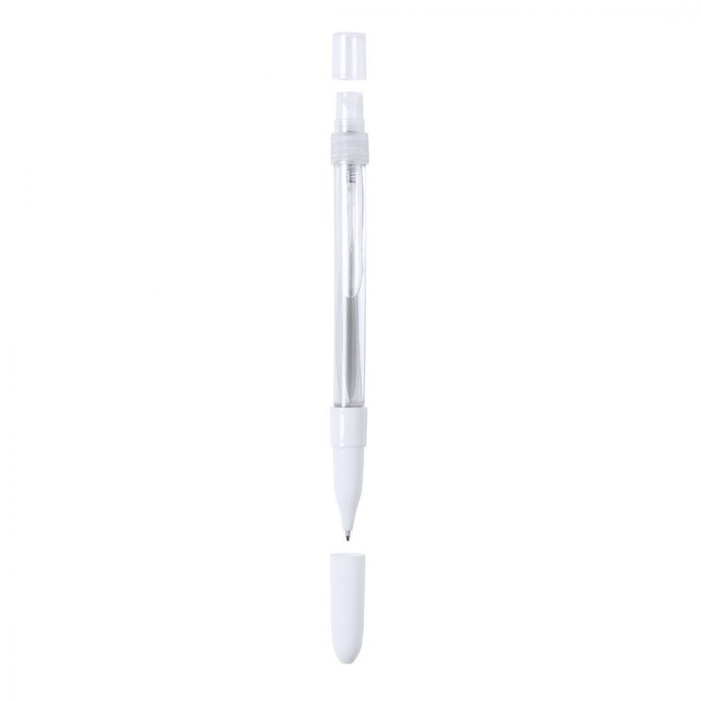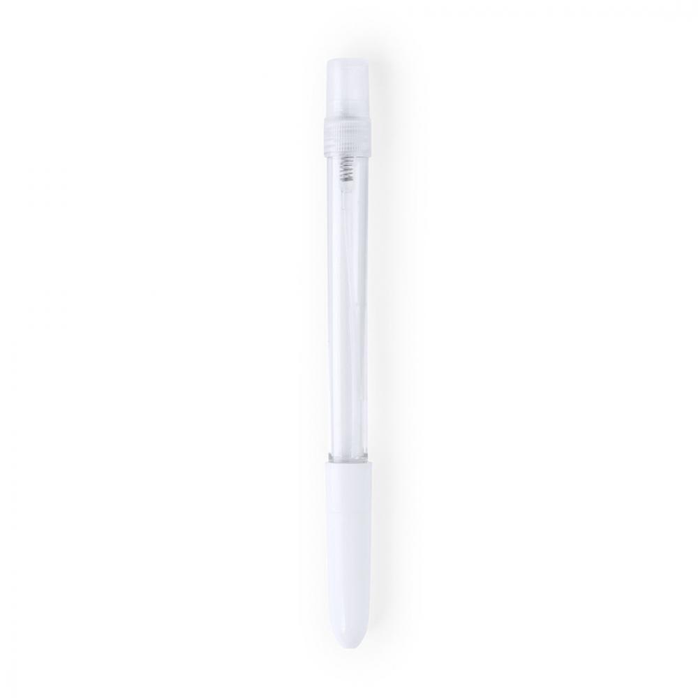 Ручка-стерилизатор с перезаряжаемым распылителем и защитным колпаком. Изготовлен из прочного АБС-пластика с блестящей отделкой. Синие чернила. Емкость распылителя 10 мл. Жидкость в комплект не входит. Доступен в белом цвете. 10 мл. Многоразового использования. Жидкость В Комплект Не Входит