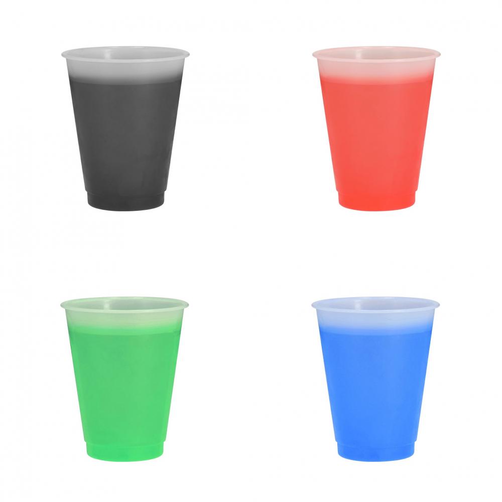 Стакан, меняющий цвет при контакте с холодными напитками. Вместимость 500 мл. С матовым прозрачным покрытием и изготовлена из прочного материала PP.