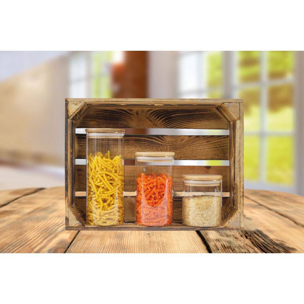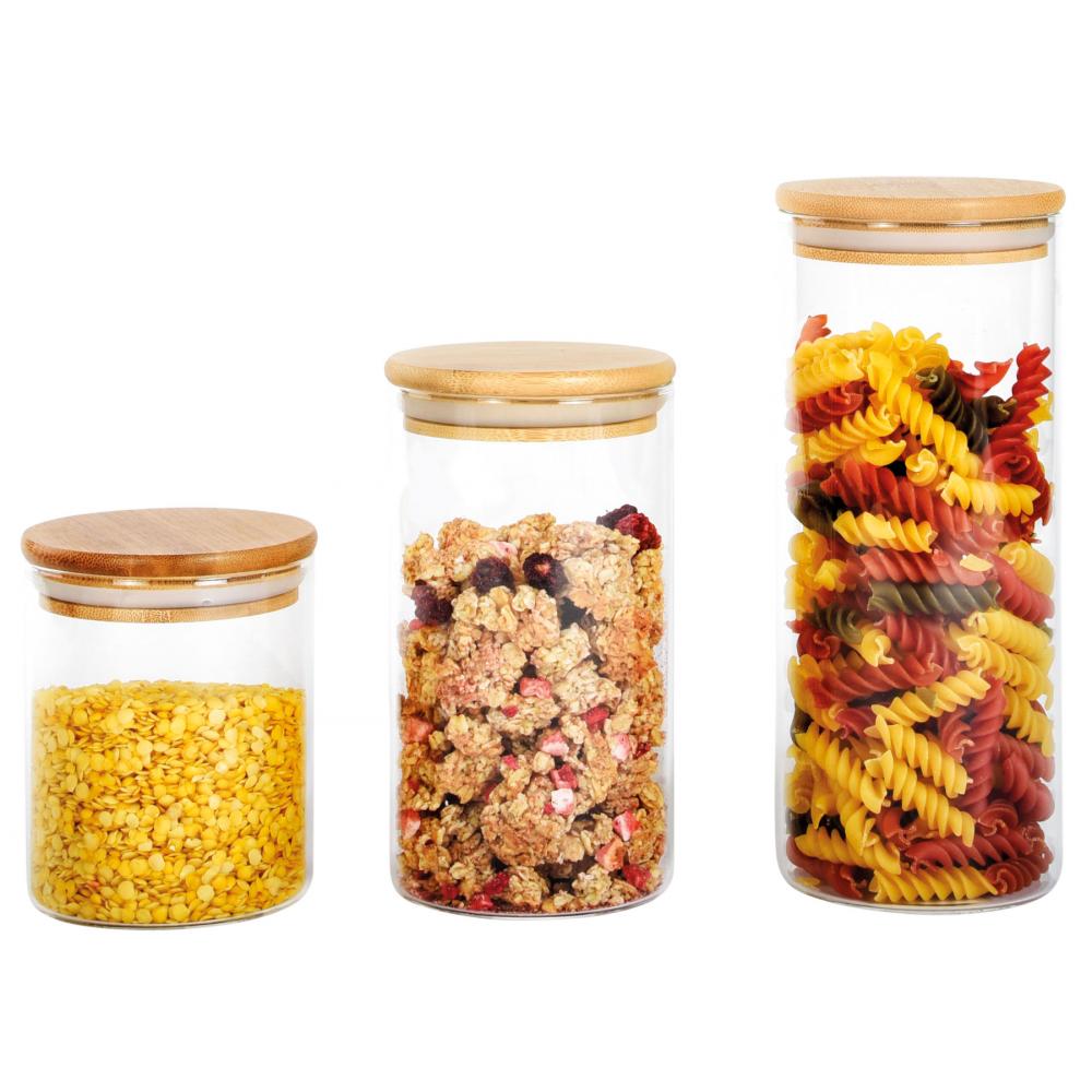 Стеклянная банка для хранения ECO STORAGE с герметичной бамбуковой крышкой для макарон, хлопьев, специй, чая, кофе и т. Д., Вместимость: прибл. 450 мл
