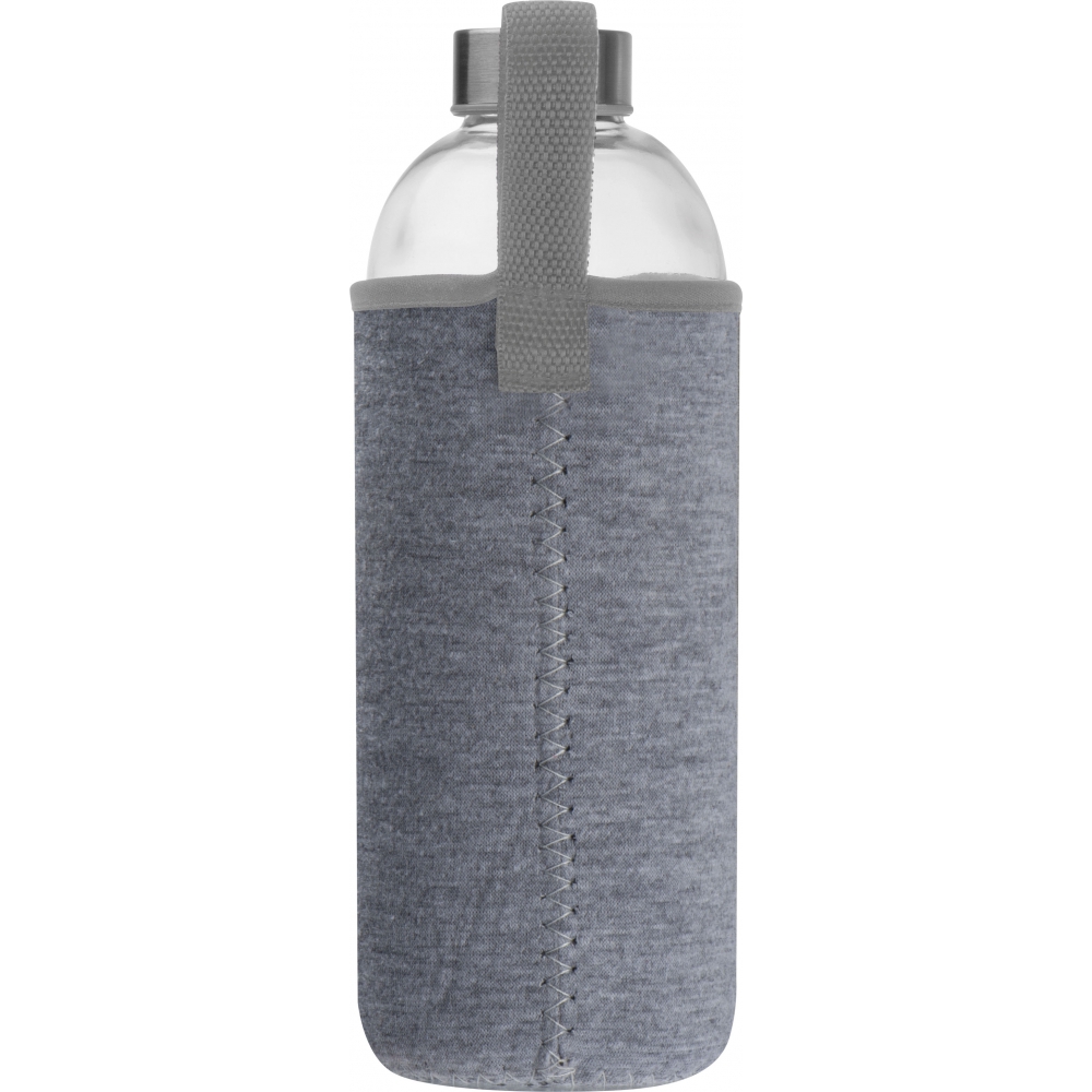 Герметичная бутылка для питья из стекла с неопреновым чехлом, петлей и объемом 1000 мл. Ваш логотип будет напечатан на чехле.
