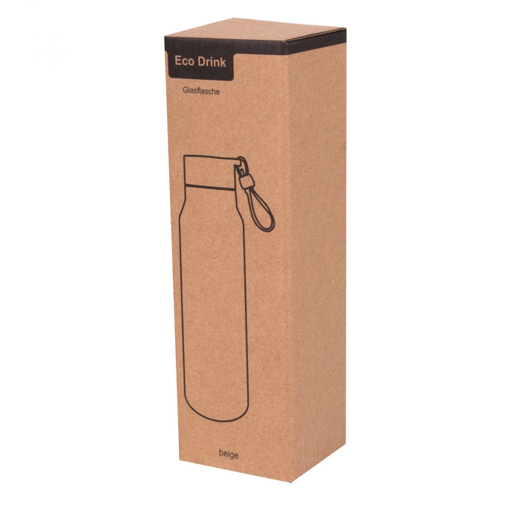 Стеклянная бутылка для питья ECO DRINK, с покрытием: завинчивающаяся крышка с ремнем для переноски, из возобновляемых источников, стекла и пластика, вместимость: прибл. 300 мл.