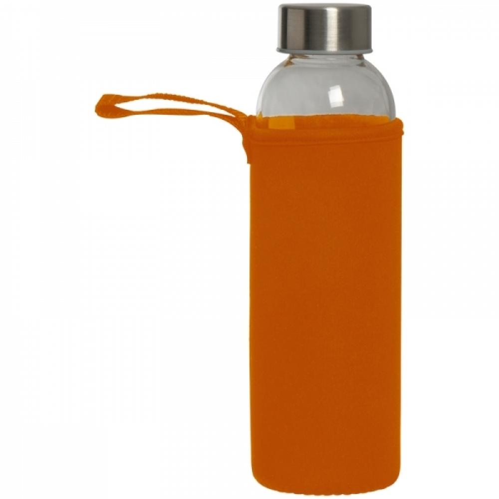 Стеклянная бутылкa в чехле из неопрена, с крышкой из металла, 500 мл. Упакованa в картонную коробку. Логотип можно нанести на чехле.