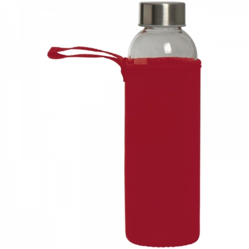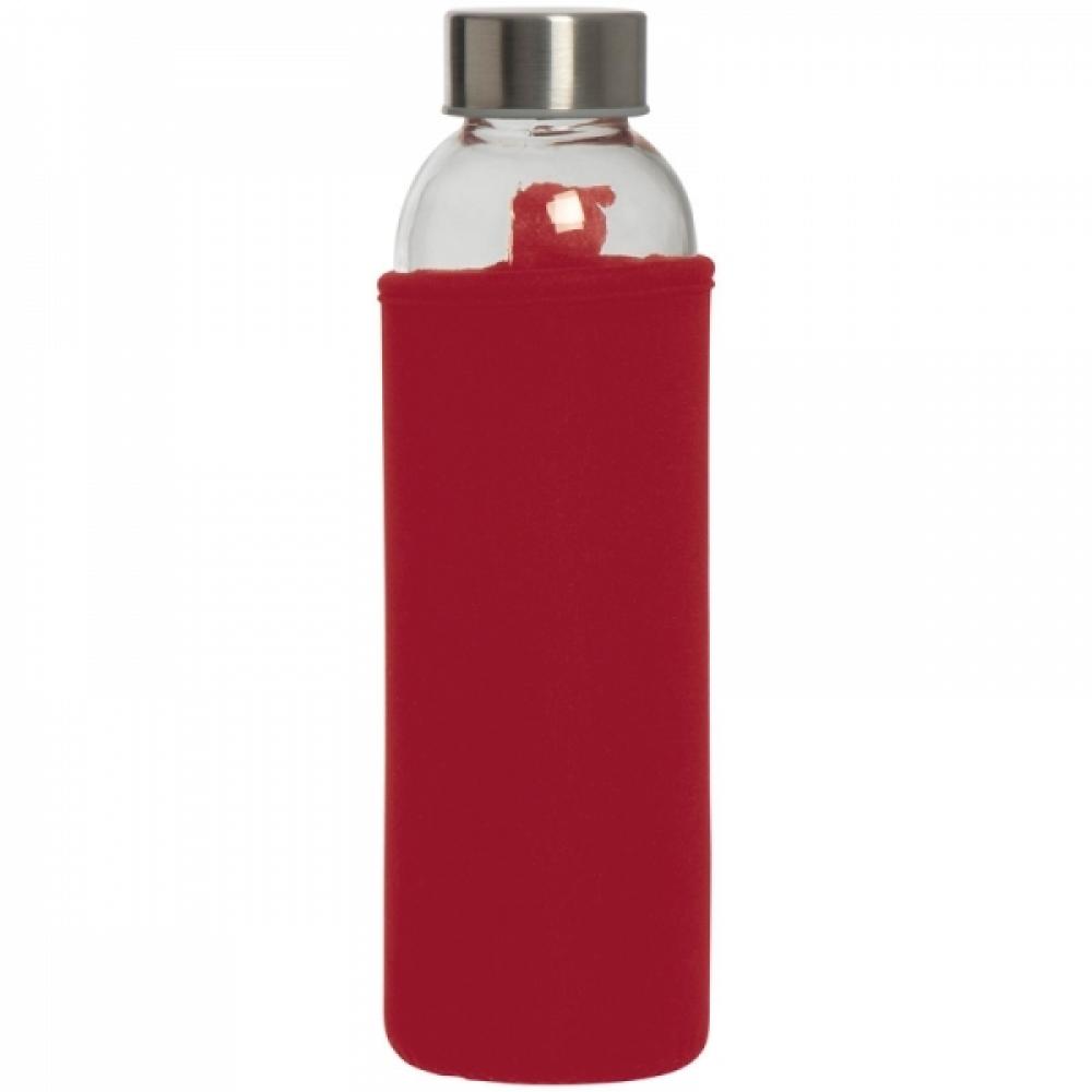 Стеклянная бутылкa в чехле из неопрена, с крышкой из металла, 500 мл. Упакованa в картонную коробку. Логотип можно нанести на чехле.