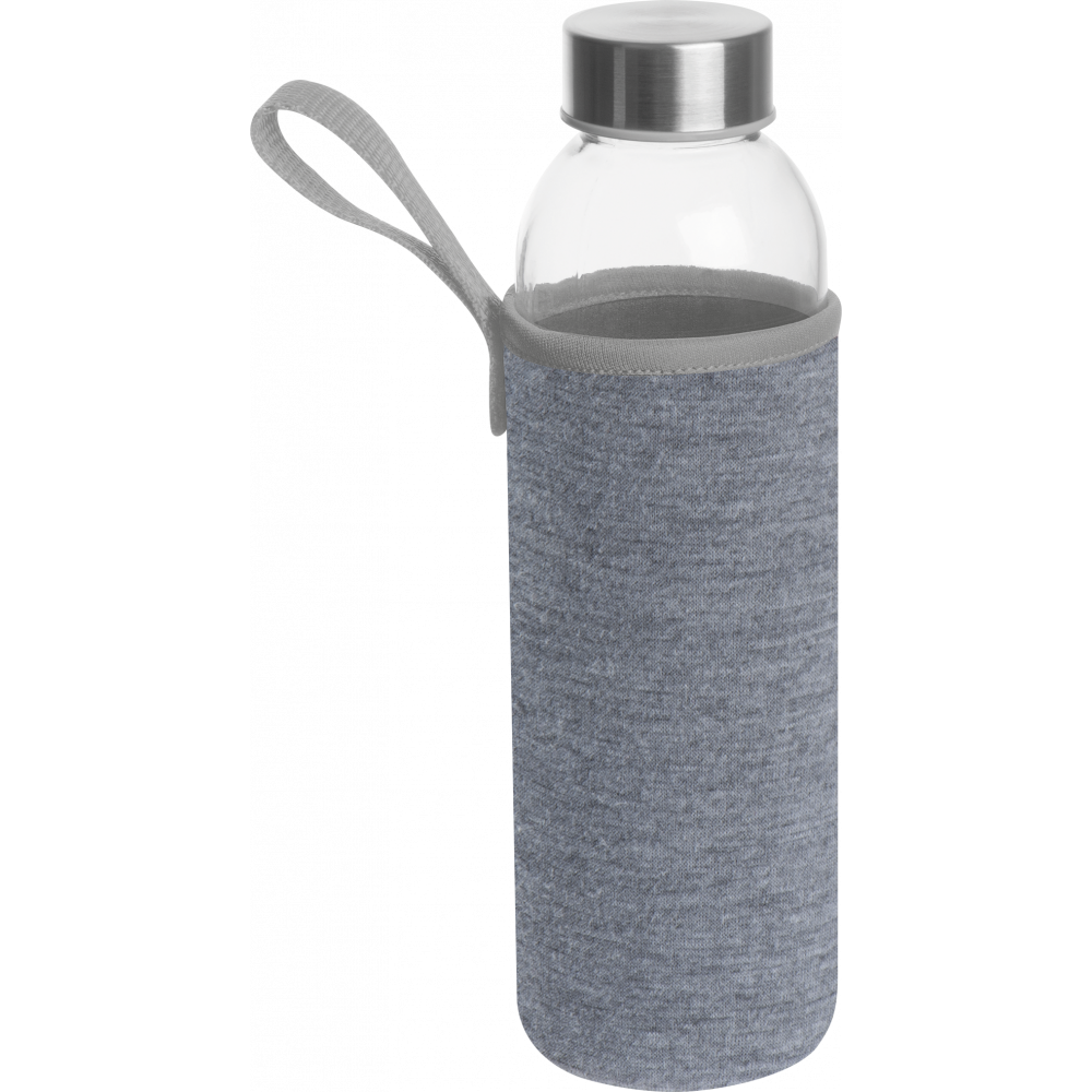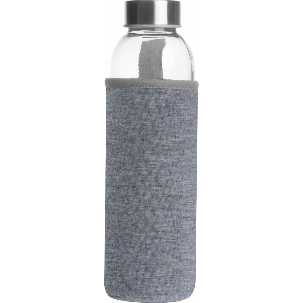 Стеклянная бутылкa в чехле из неопрена, с крышкой из металла, 500 мл. Упакованa в картонную коробку. Логотип можно нанести на чехле.