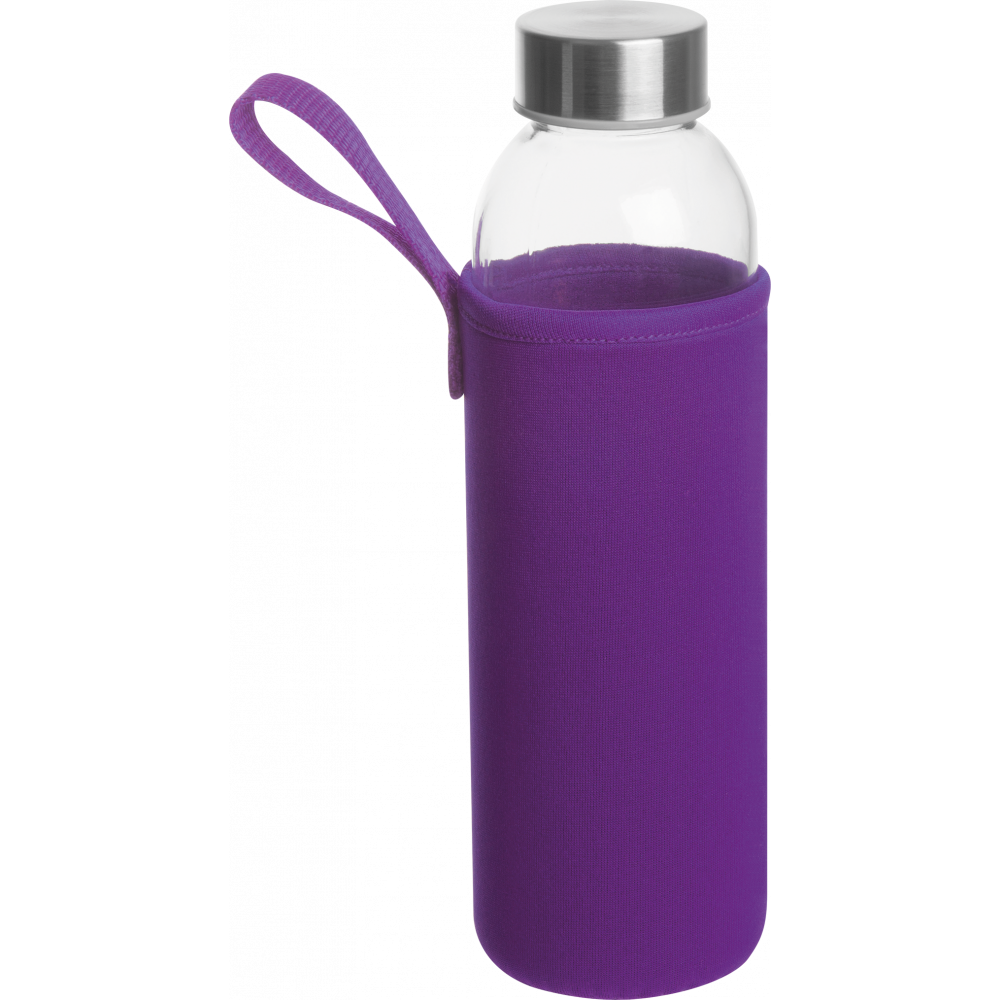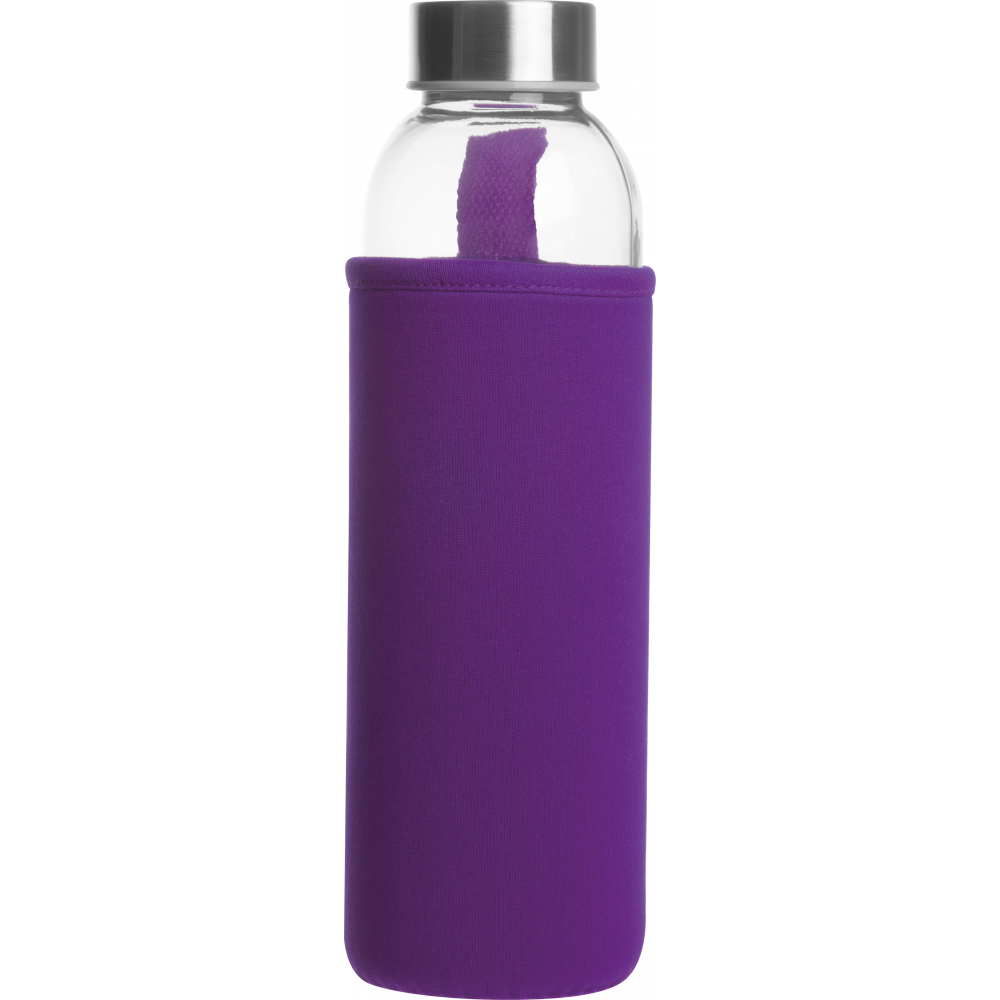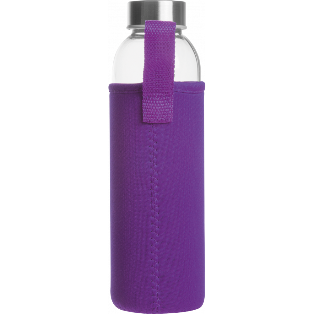 Стеклянная бутылкa в чехле из неопрена, с крышкой из металла, 500 мл. Упакованa в картонную коробку. Логотип можно нанести на чехле.