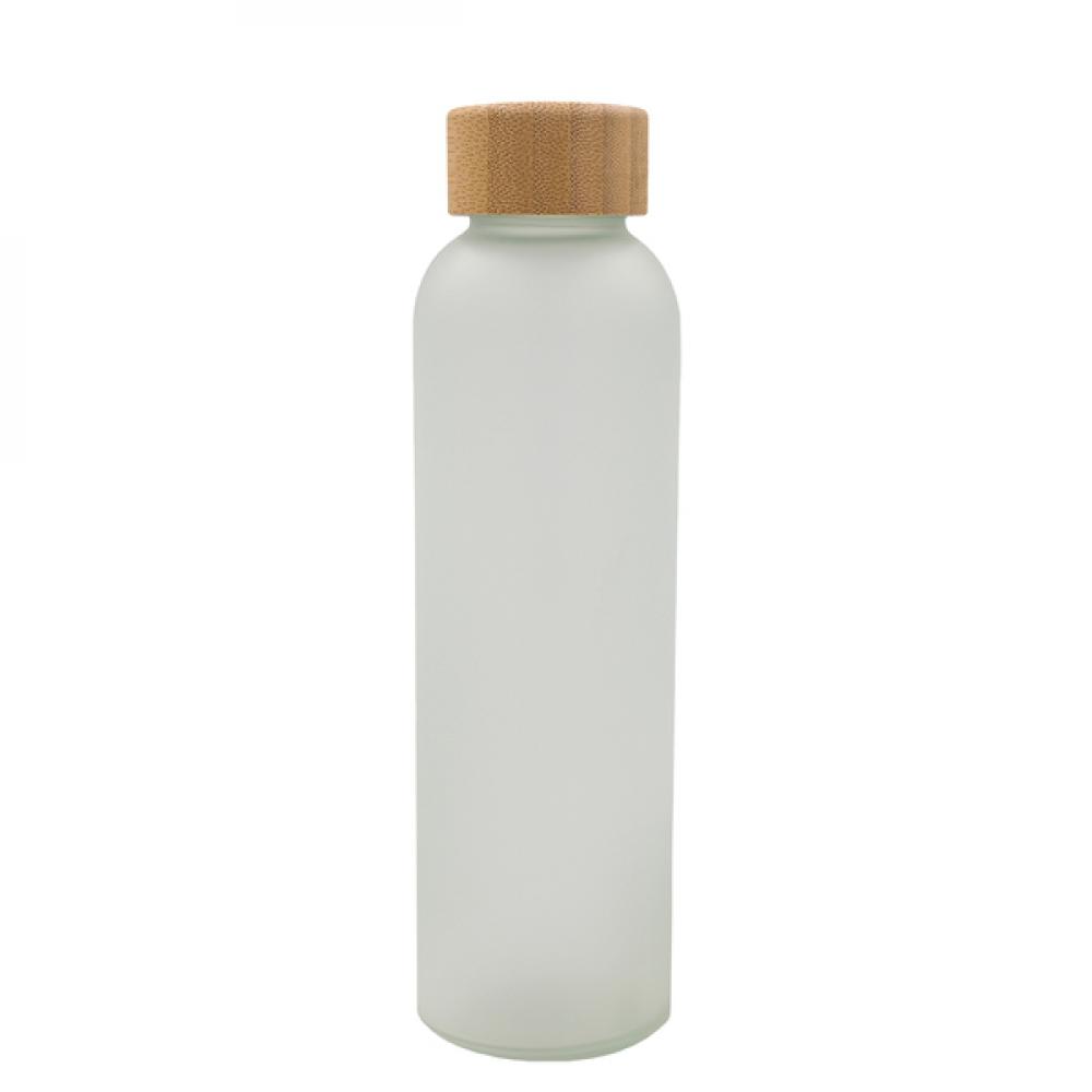 Бутылка из стекла с матовой отделкой, закрытая бамбуковой крышкой. Вместимость 500 мл.