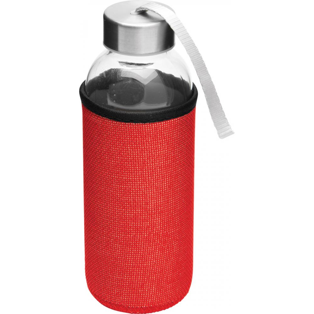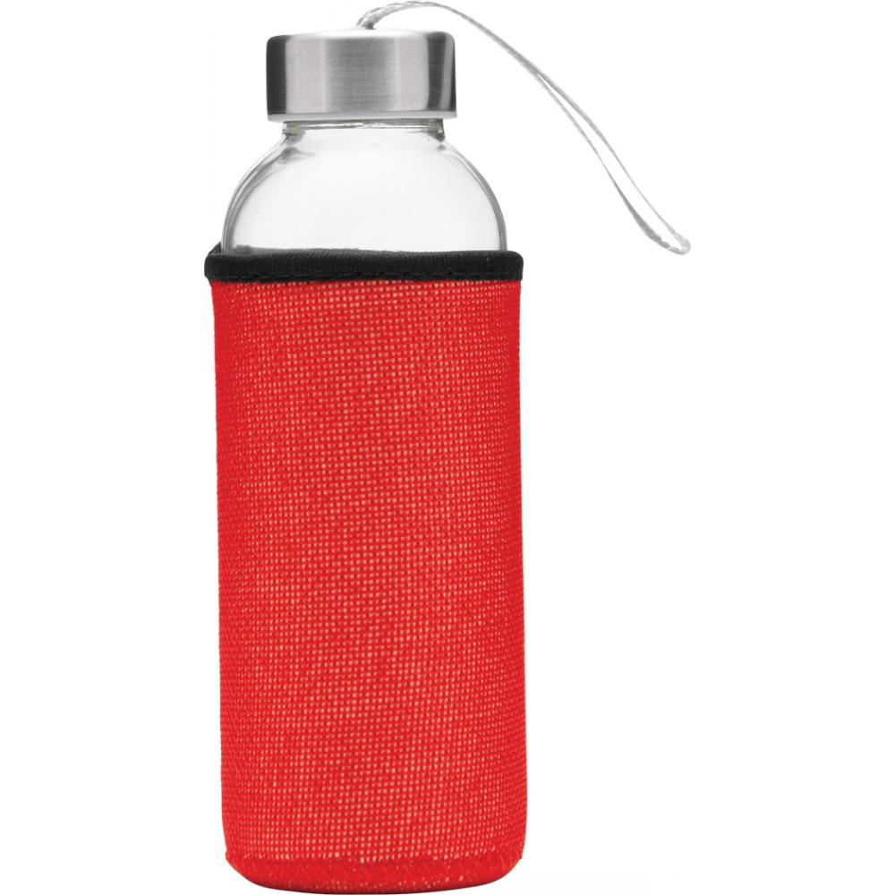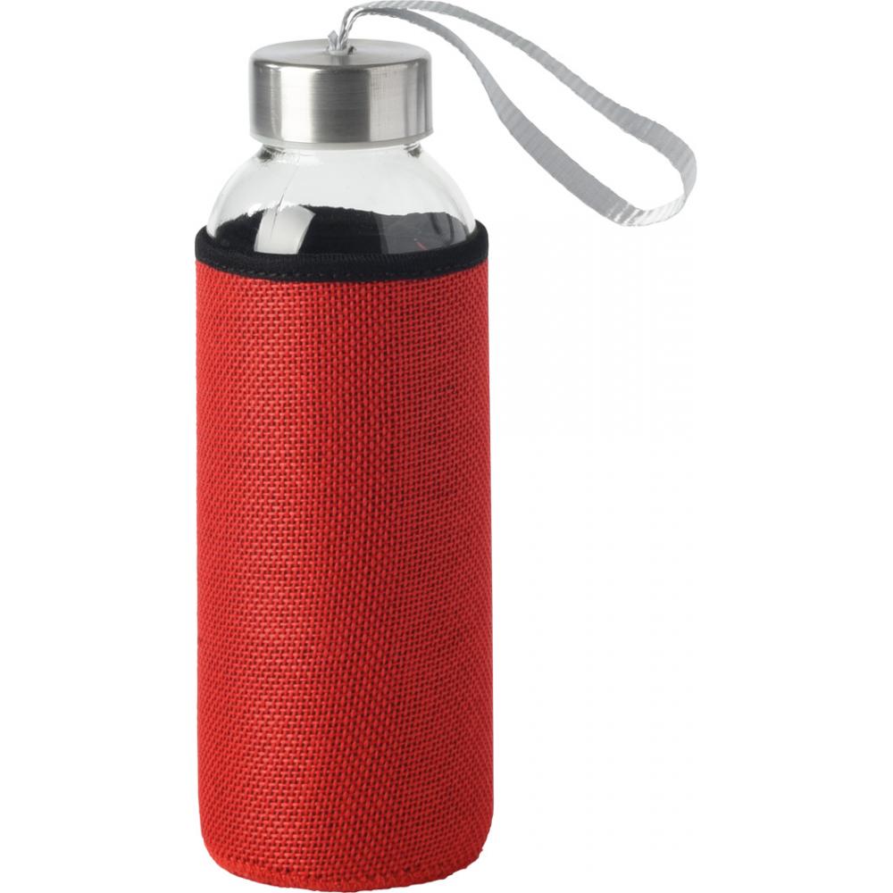 Стеклянная бутылка TAKE JUTY: навинчивающаяся крышка из нержавеющей стали с силиконовым уплотнением и петлей для переноски, вкл. цветной защитный чехол из джута, вместимость ок. 450 мл, в белой коробке