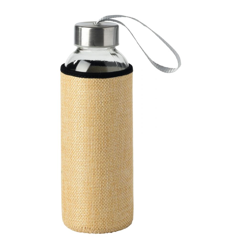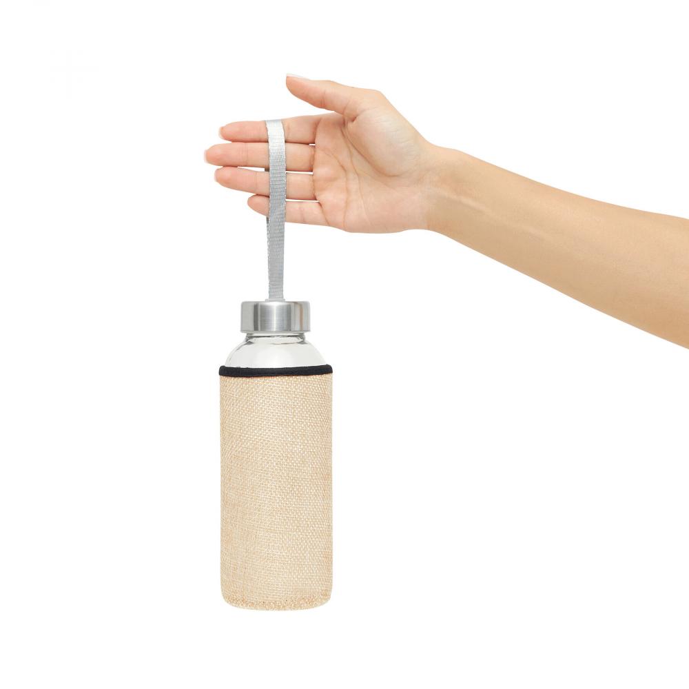 Стеклянная бутылка TAKE JUTY: навинчивающаяся крышка из нержавеющей стали с силиконовым уплотнением и петлей для переноски, вкл. цветной защитный чехол из джута, вместимость ок. 450 мл, в белой коробке