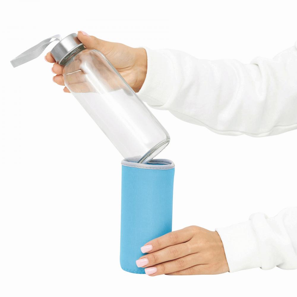 Стеклянная бутылка TAKE WELL: завинчивающаяся крышка и петля для переноски, вкл. цветная защитная оболочка, вместимость ок. 450 мл