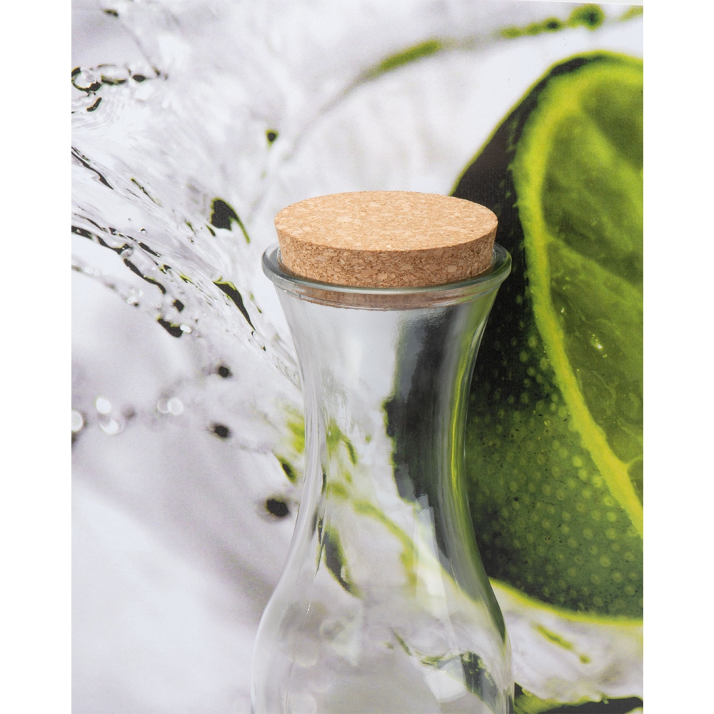 Стеклянный графин с крышкой из пробки. Объем 1 л.