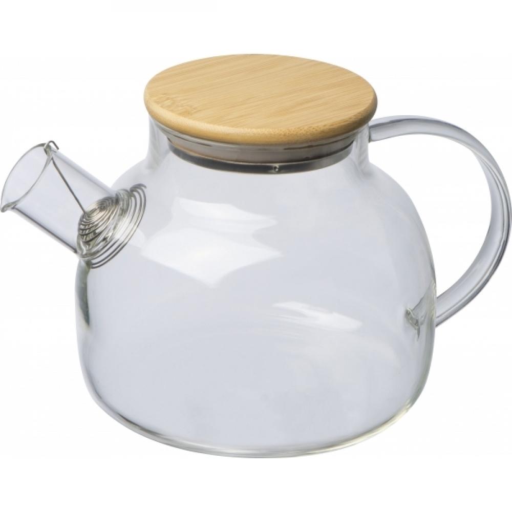 Стеклянный кувшин с закрывающейся бамбуковой крышкой, разливочным ситом и емкостью 1000 мл.