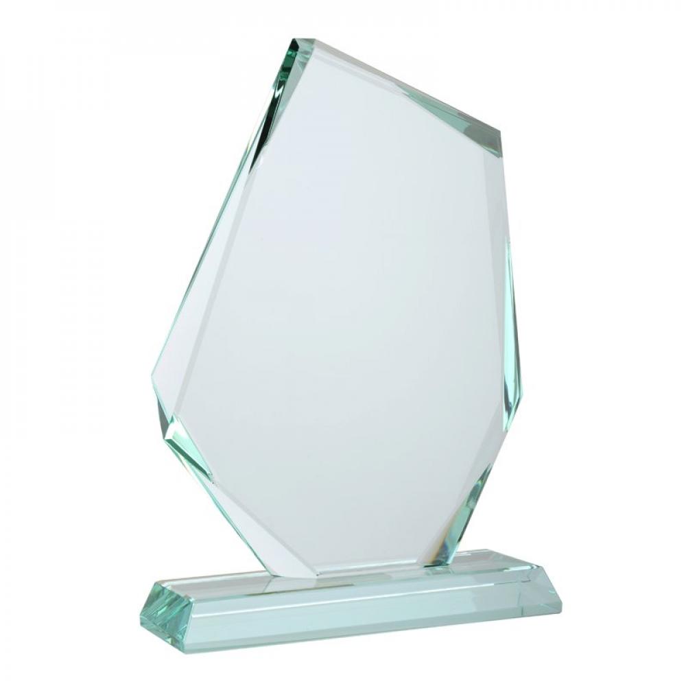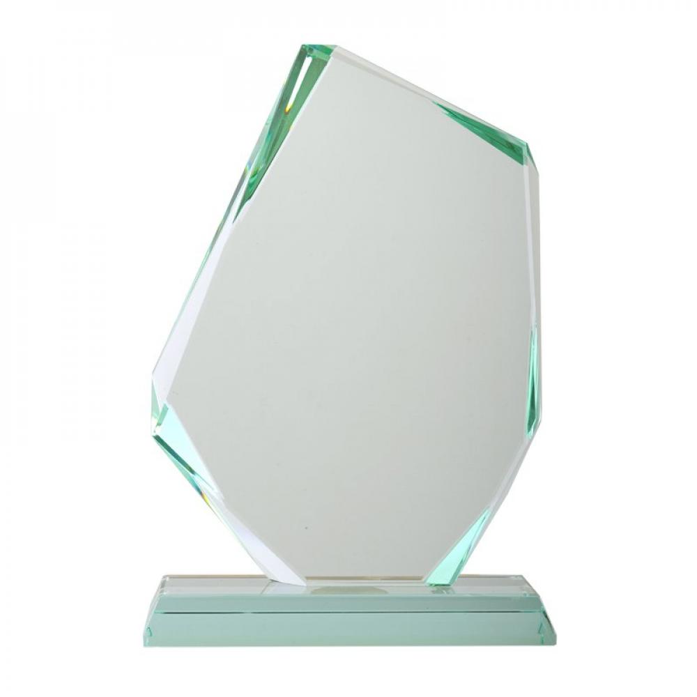 Стеклянный трофей в форме драгоценного камня. Упакован в элегантную черную коробку и съемную белую картонную обложку.