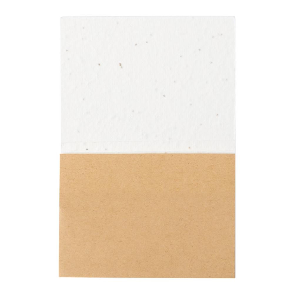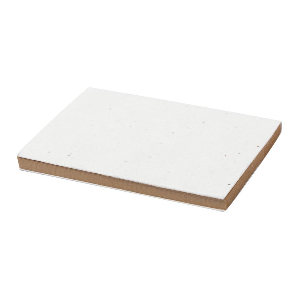 Липкий блокнот из переработанной крафт-бумаги, покрытый семенной бумагой, с 50 заметками. Обложка из семенной бумаги содержит семена петунии разных цветов, которые можно посадить, отделив обложку от блокнота.
