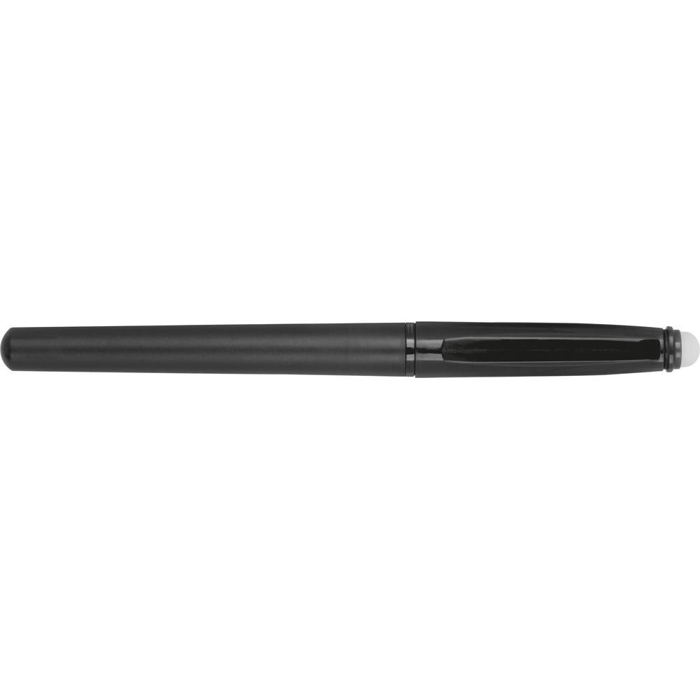 Пластиковая ручка с гелевым картриджем и ластиком в пробке. Цвет картриджа такой же, как и цвет корпуса.