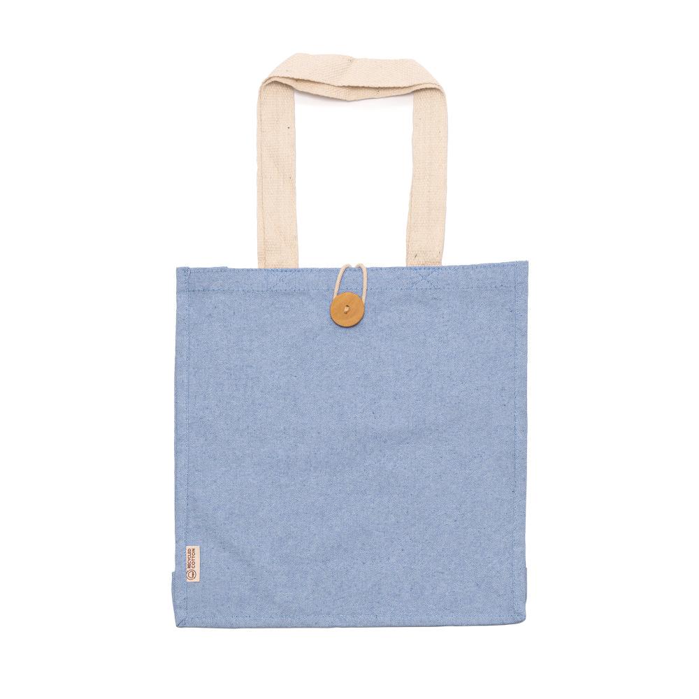 Сумка из переработанного хлопка с отделкой под меланж. Усиленные ручки длиной 70 см. Застежка на кнопку.