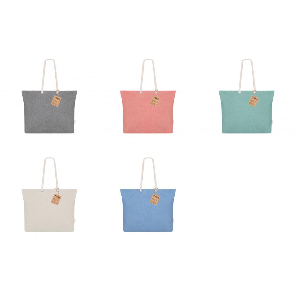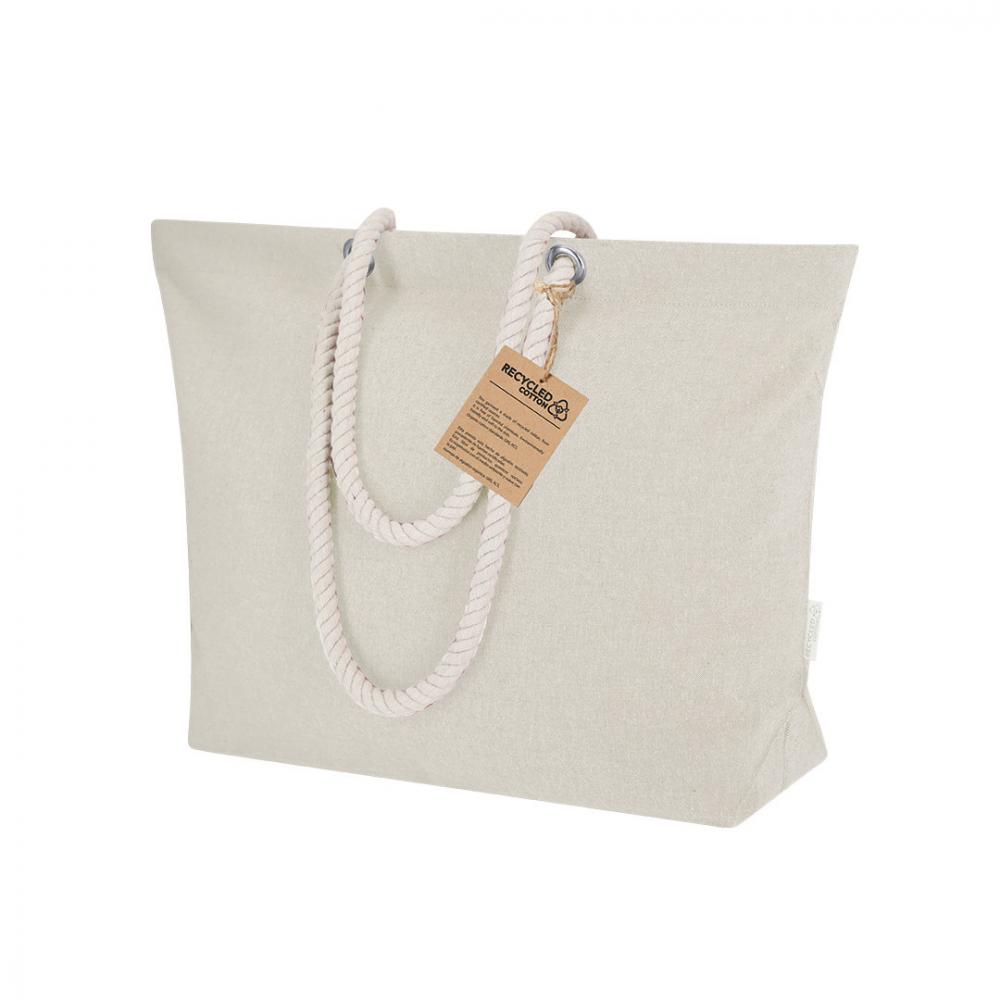 Сумка изготовлена в основном из переработанного хлопка плотностью 220 г/м2. С боковиной и длинными хлопковыми ручками натурального цвета с плетеным дизайном. Включает в себя этикетку из переработанного хлопка.