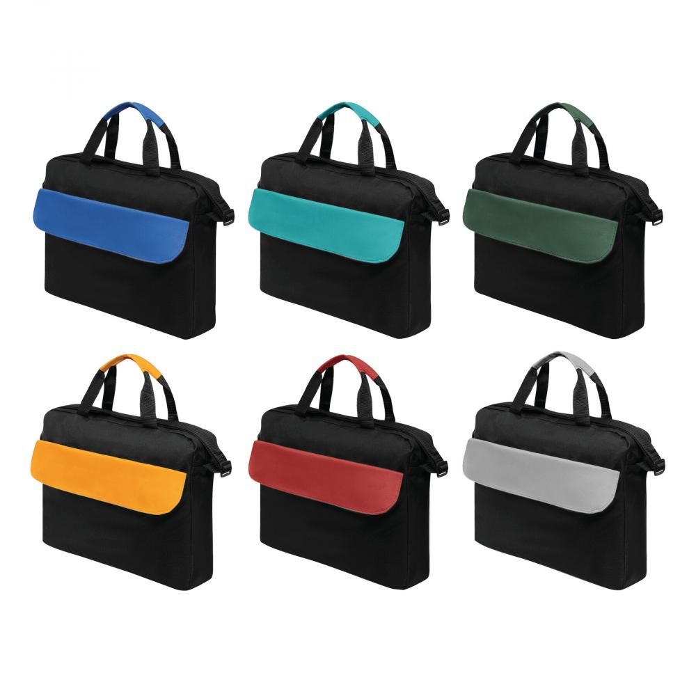 Сумка для документов BRISTOL: передний карман на липучке с цветной крышкой, просторное основное отделение на молнии, 2 усиленные ручки для переноски разного цвета, регулируемый плечевой ремень