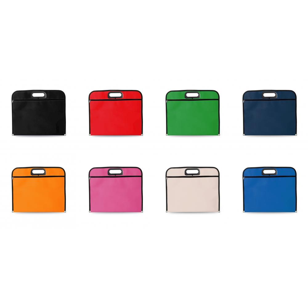 Особенности Сумка для документов с застежкой-молнией из мягкого полиэстера 600D ярких тонов. С вырезанными под давлением усиленными ручками для переноски и черным кантом с усилением металлической пластиной у основания. Полиэстер 600D