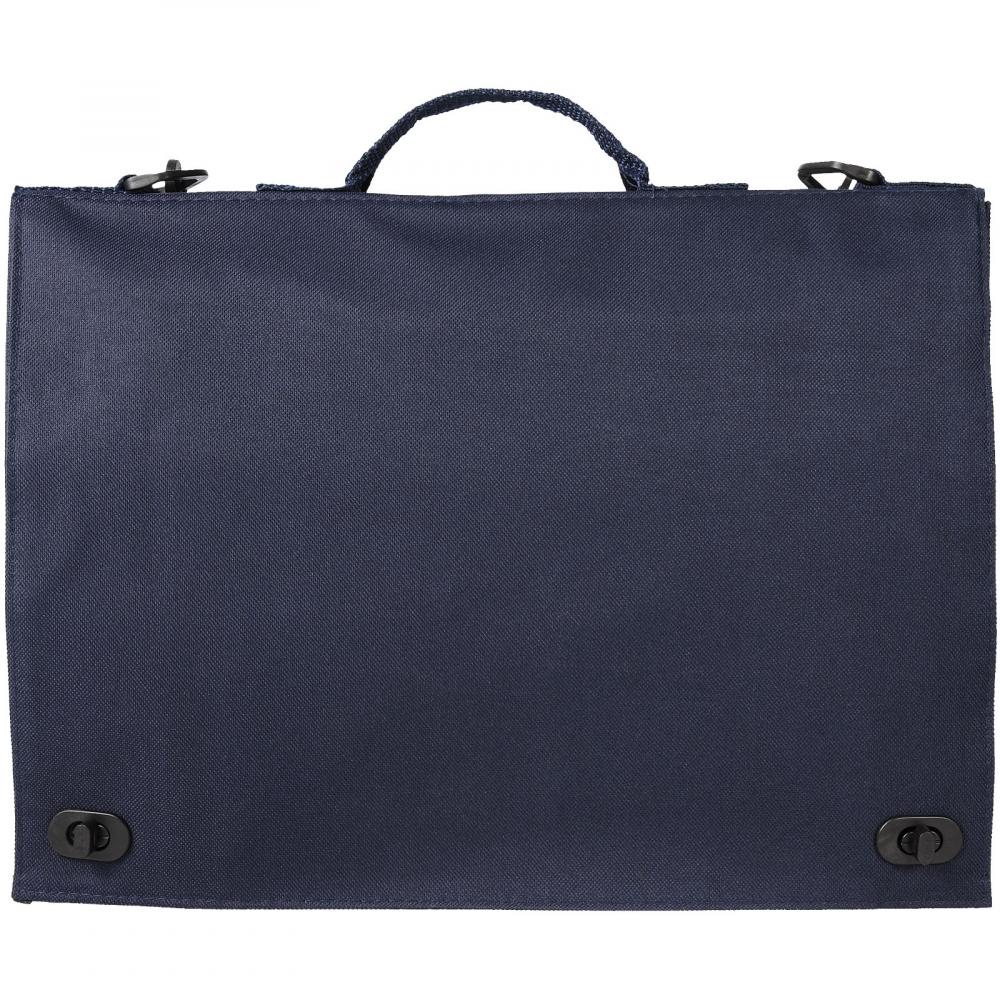 Конференц-сумка с ручкой, регулируемым плечевым ремнем, застежкой на пряжке и несколькими карманами для документов.