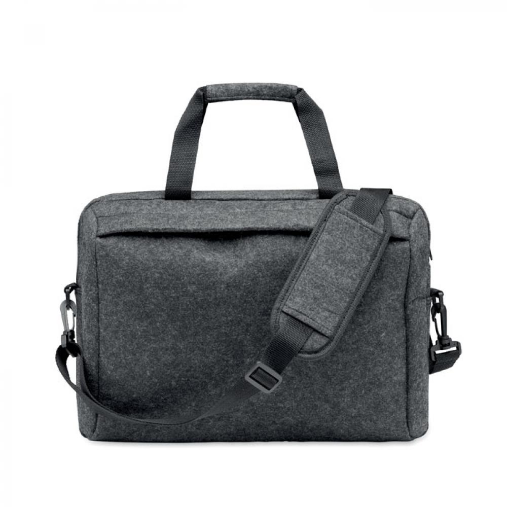 Сумка для ноутбука 15 дюймов из переработанного войлока RPET с одним основным отделением и одним передним карманом на молнии. Съемный регулируемый плечевой ремень. Ремень для крепления на чемодане.