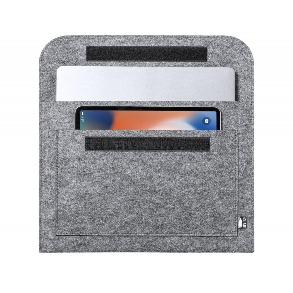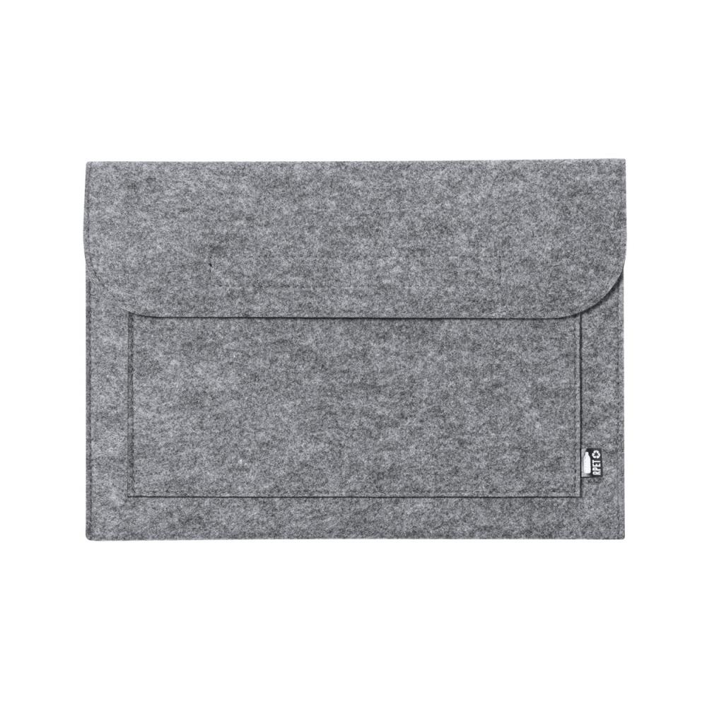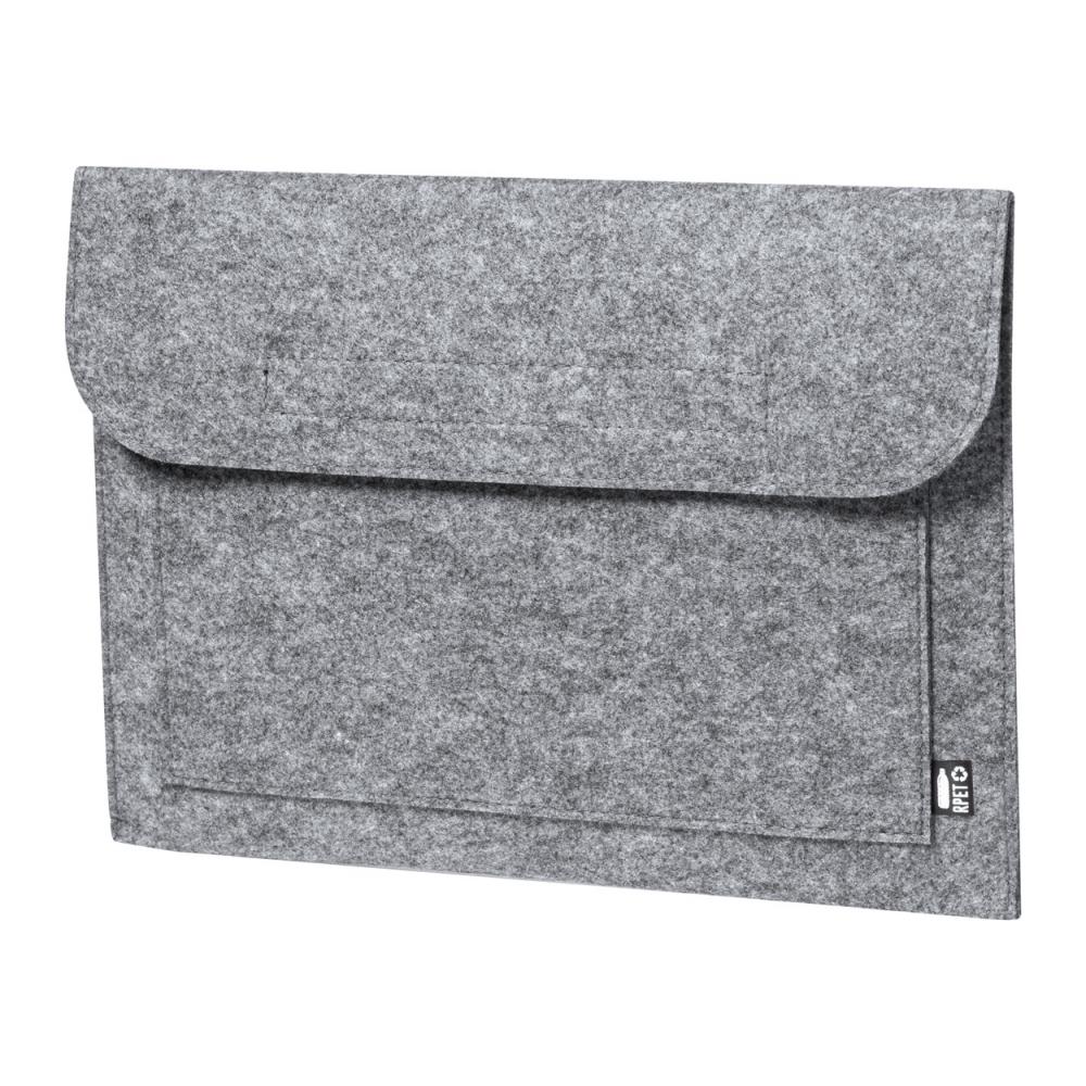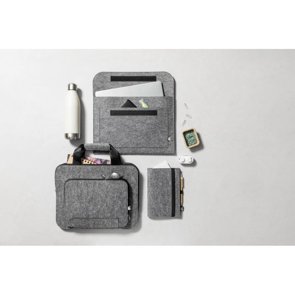 Фетровая сумка для ноутбука RPET с передним карманом и застежкой на липучку. С отличительной этикеткой RPET.