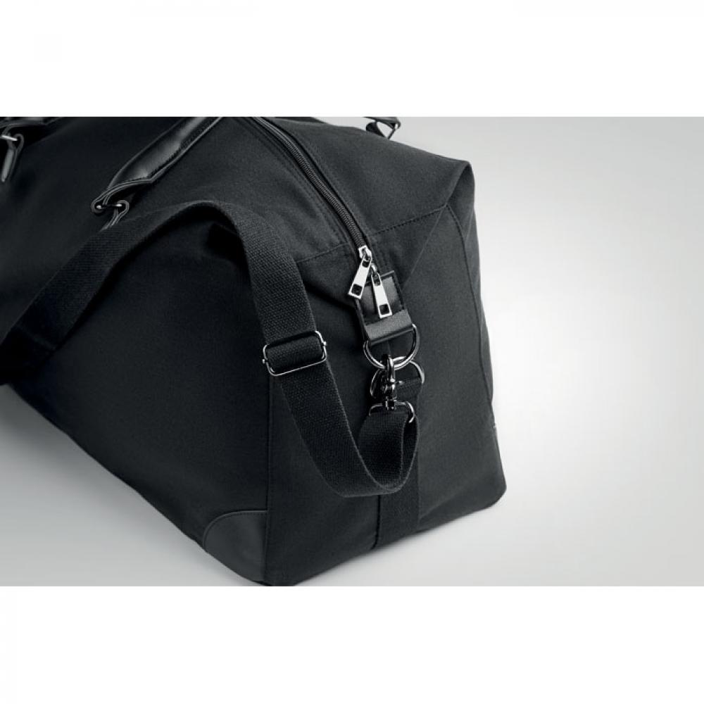 Сумка для выходных из высококачественной жатой парусины плотностью 340 г/м² с фурнитурой из переработанного ПУ. Подкладка RPET 210D. Прочная регулируемая съемная шлейка. Имеет размер ручной клади.