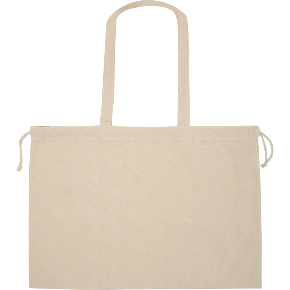 Сумка из органического хлопка, сертифицированная по стандарту GOTS, плотностью 180 г/м² и с застежкой на шнурке.
