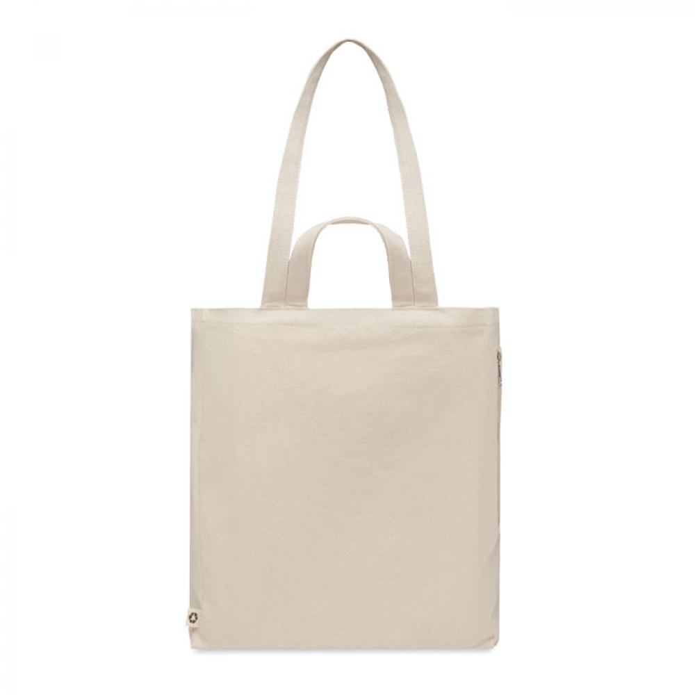 Сумка для покупок или пляжа из переработанного поликоттона (70% переработанного хлопка, 30% переработанного полиэстера) с короткими ручками. Имеет боковой карман на молнии гр/м² 380.