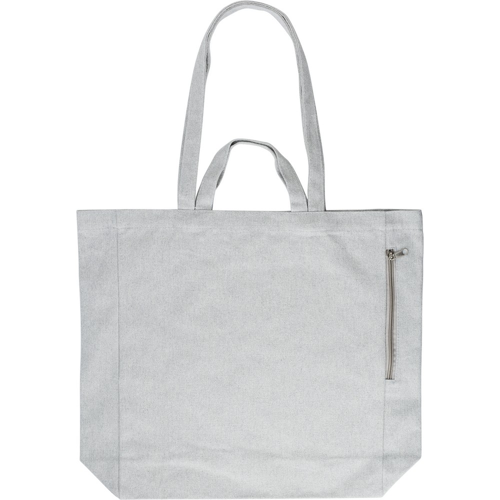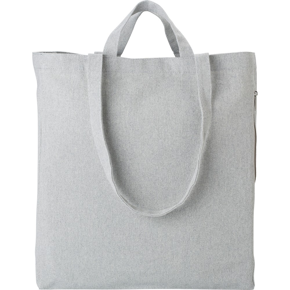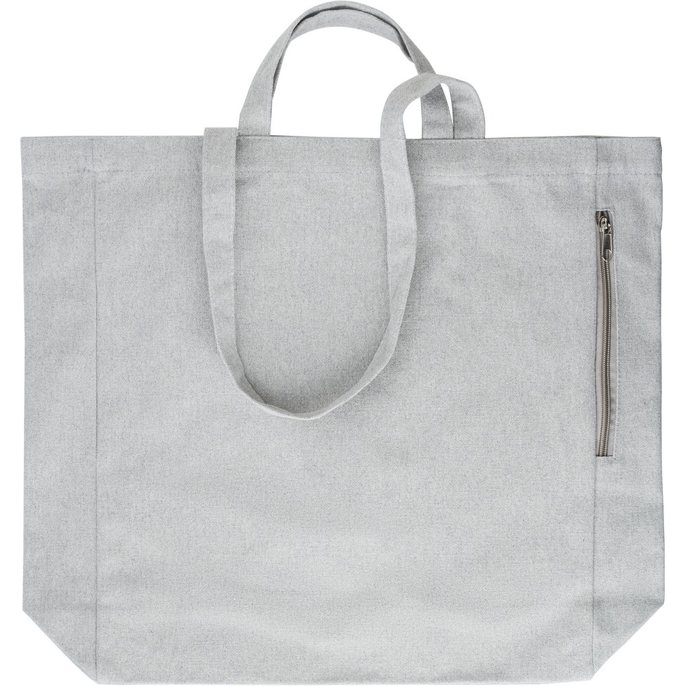 Сумка для покупок из переработанного хлопка с длинными и короткими ручками, боковым карманом на молнии.