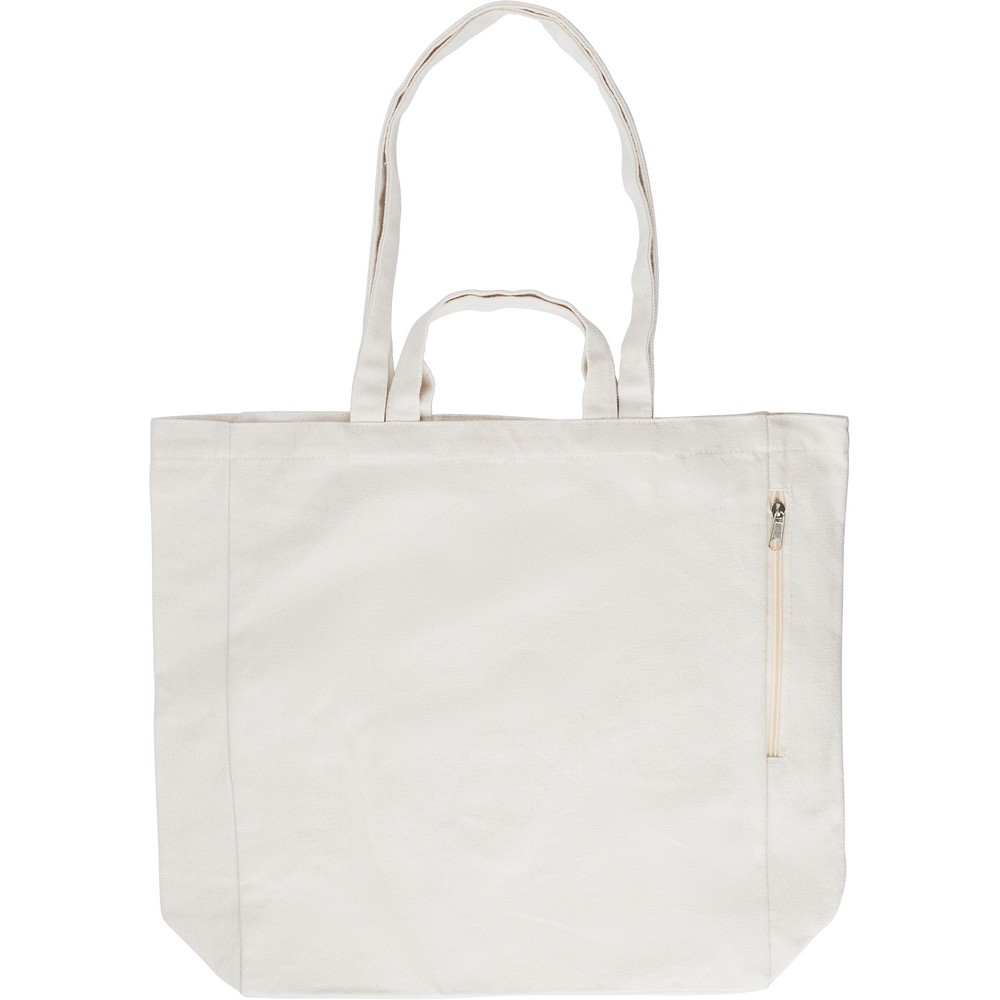 Сумка для покупок из переработанного хлопка с длинными и короткими ручками, боковым карманом на молнии.