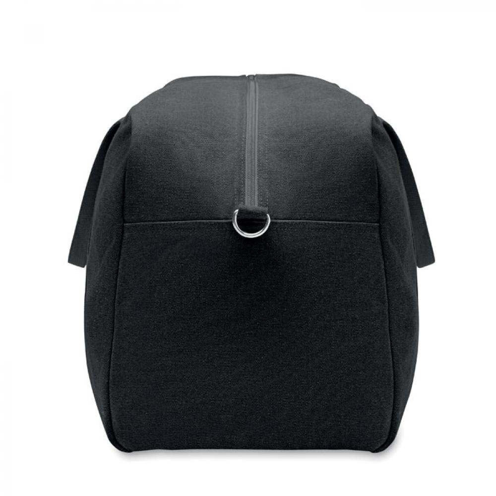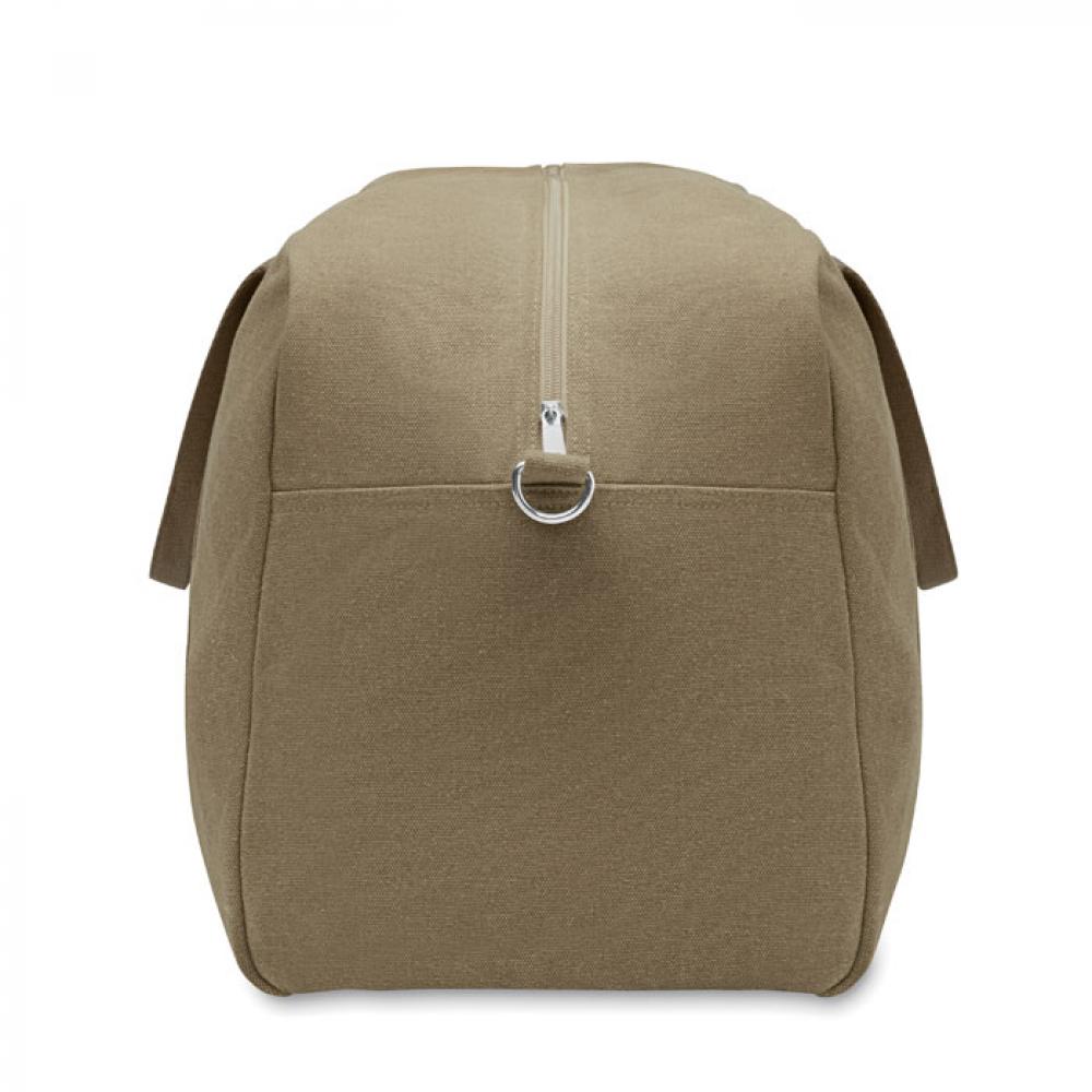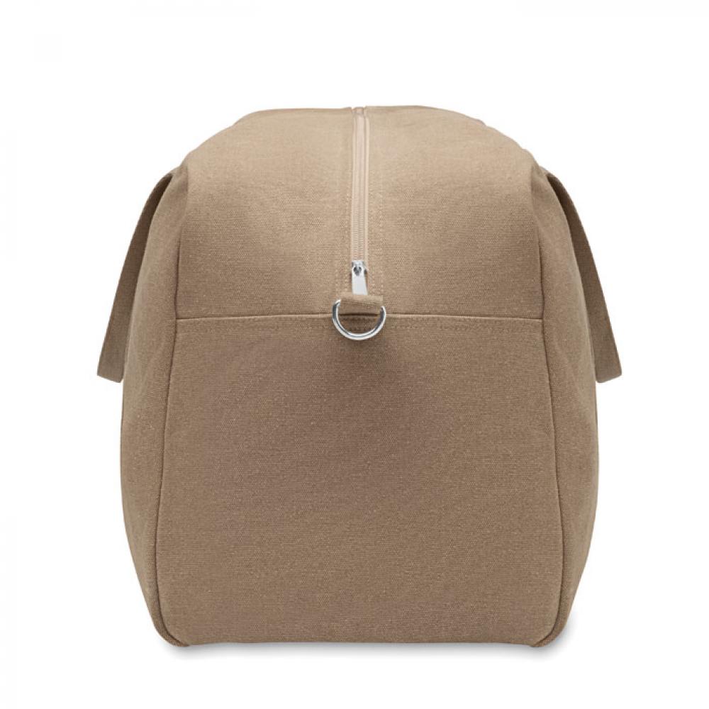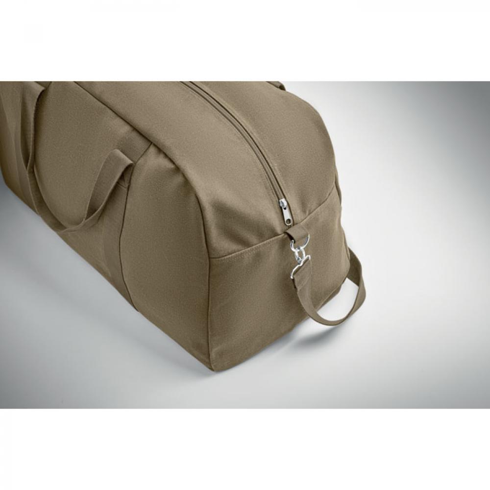 Дорожная сумка из переработанного материала плотностью 450 гр/м² (60% переработанного хлопка и 40% переработанного полиэстера) с регулируемым съемным ремнем из хлопка.