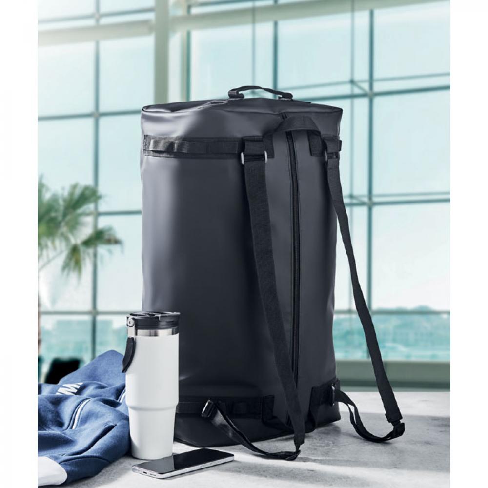 Большая спортивная или дорожная сумка, которую также можно использовать как рюкзак, из брезента 50C с внутренним отделением на молнии. Имеет съемный и регулируемый плечевой ремень и подкладку из RPET.