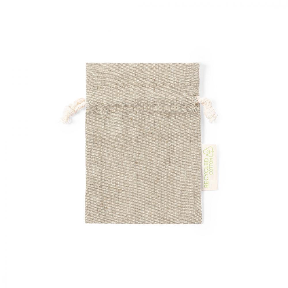 Сумка в натуральной линии размером 10х14 см. С застежкой на шнурок и изготовлен из 100% переработанного хлопка плотностью 120 г/м2. Простая маркировка, специально разработанная для небольших предметов, с этикеткой из переработанного хлопка снаружи. Имеется сертификат GRS (Global Recycled Standard), гарантирующий переработанное происхождение материала, используемого для изготовления продукта. Выпускается в широкой цветовой гамме. 100% Переработанный хлопок 120 г/м2