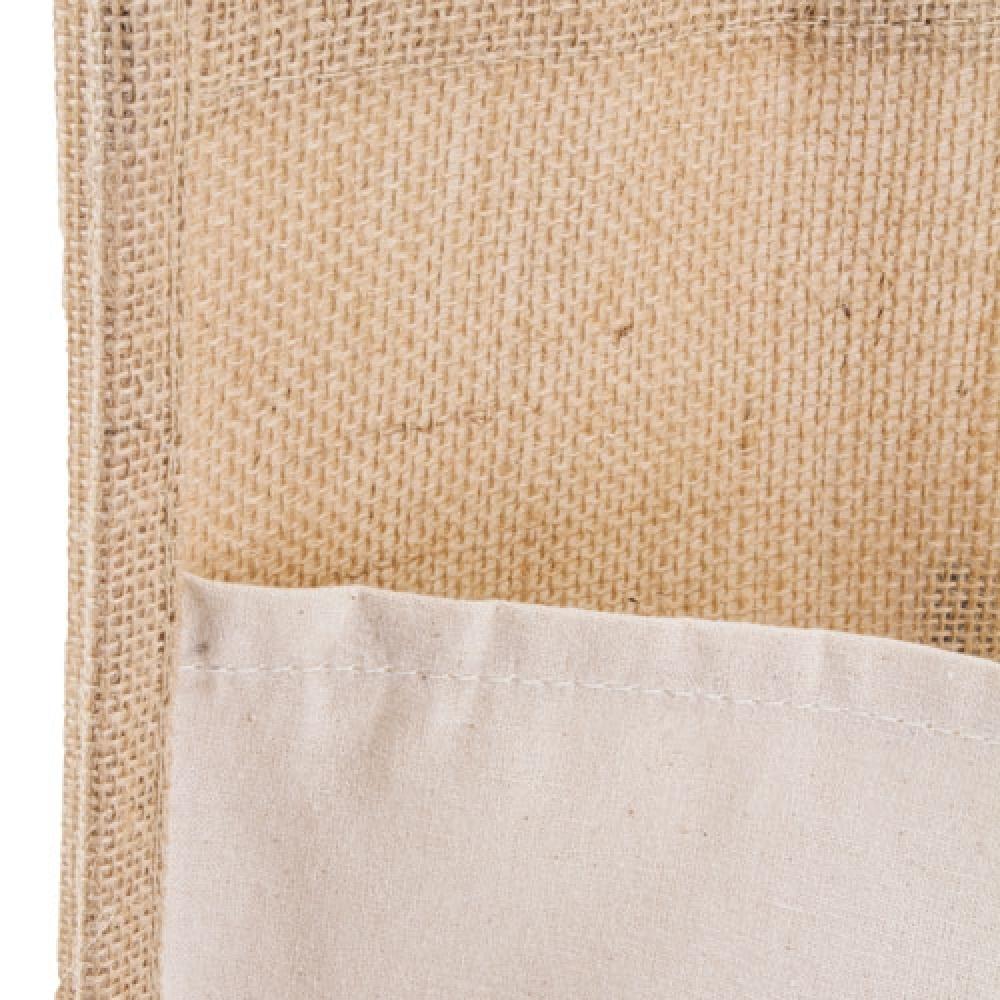 Изготовлен из хлопка и ультрапрочной ламинированной джутовой ткани. Включает внешний карман и ручки с повышенным комфортом.