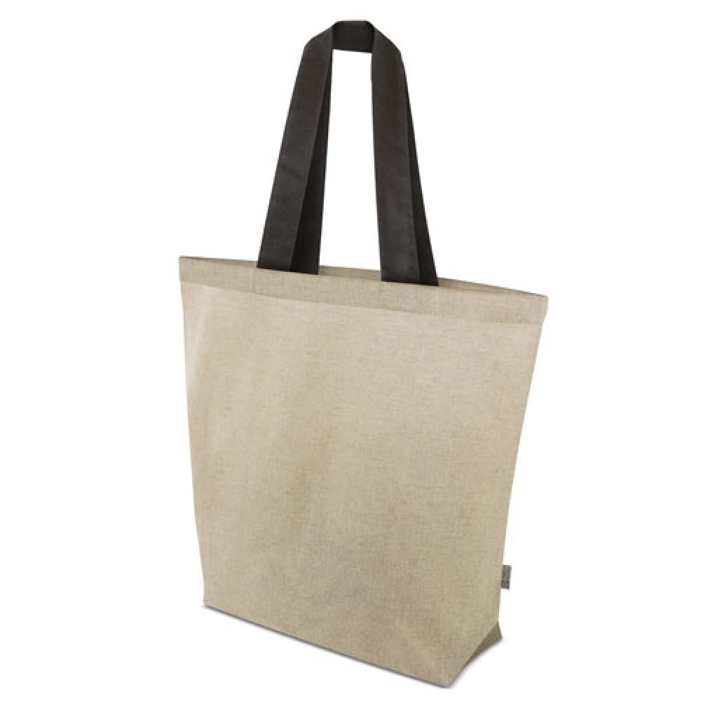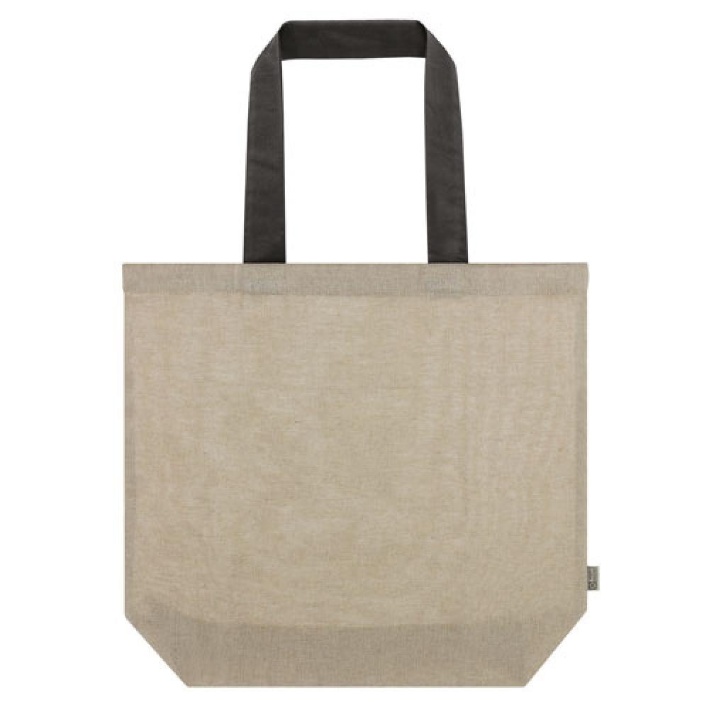 Сверхбольшая сумка, изготовленная из переработанного хлопка. Доступна с ручками трех цветов: красного, черного и синего.