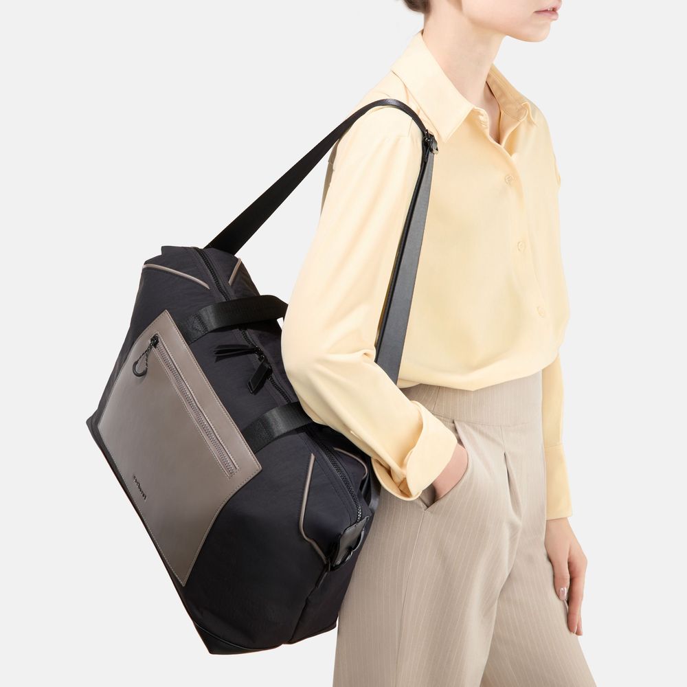 Сумка «Josephine» сочетает слегка помятый черный нейлон с гладкими текстурами цвета тауп на переднем кармане, что также отражено в отделке. Эти идеально сочетающиеся тона создают смелый, но сдержанный и игривый дизайн, воплощающий суть бренда Cacharel. Разработанная с учетом универсальности, эта вместительная сумка оснащена большим передним карманом и предлагает достаточно места для повседневных вещей или дорожных принадлежностей. Ее ультралегкая конструкция обеспечивает легкость в переноске. Продуманная компоновка сочетает удобство с элегантностью, идеально подходя как для повседневного, так и для активного образа жизни. Ее спортивный, но утонченный силуэт делает ее идеальным спутником в путешествиях, предлагая вечный стиль, оставаясь при этом в тренде для любого случая.