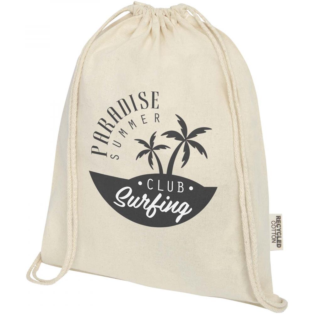 Сумка на шнурке Oregon, изготовленная из 100% переработанного хлопка с сертификатом GRS, легко раздается в качестве подарка для продвижения вашего бренда или маркетинговой кампании. Эта легкая сумка экономична, удобна для ношения на спине или на плече и предоставляет достаточно места для нанесения логотипа или других сообщений. Шнурок позволяет легко открывать и закрывать сумку, а материал из хлопка плотностью 140 г/м² прочный и долговечный. Большое основное отделение с хлопковым шнурком-застежкой. Выдерживает вес до 5 кг.