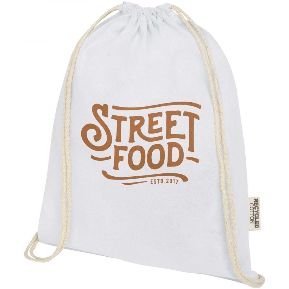 Сумка на шнурке Oregon, изготовленная из 100% переработанного хлопка с сертификатом GRS, легко раздается в качестве подарка для продвижения вашего бренда или маркетинговой кампании. Эта легкая сумка экономична, удобна для ношения на спине или на плече и предоставляет достаточно места для нанесения логотипа или других сообщений. Шнурок позволяет легко открывать и закрывать сумку, а материал из хлопка плотностью 140 г/м² прочный и долговечный. Большое основное отделение с хлопковым шнурком-застежкой. Выдерживает вес до 5 кг.