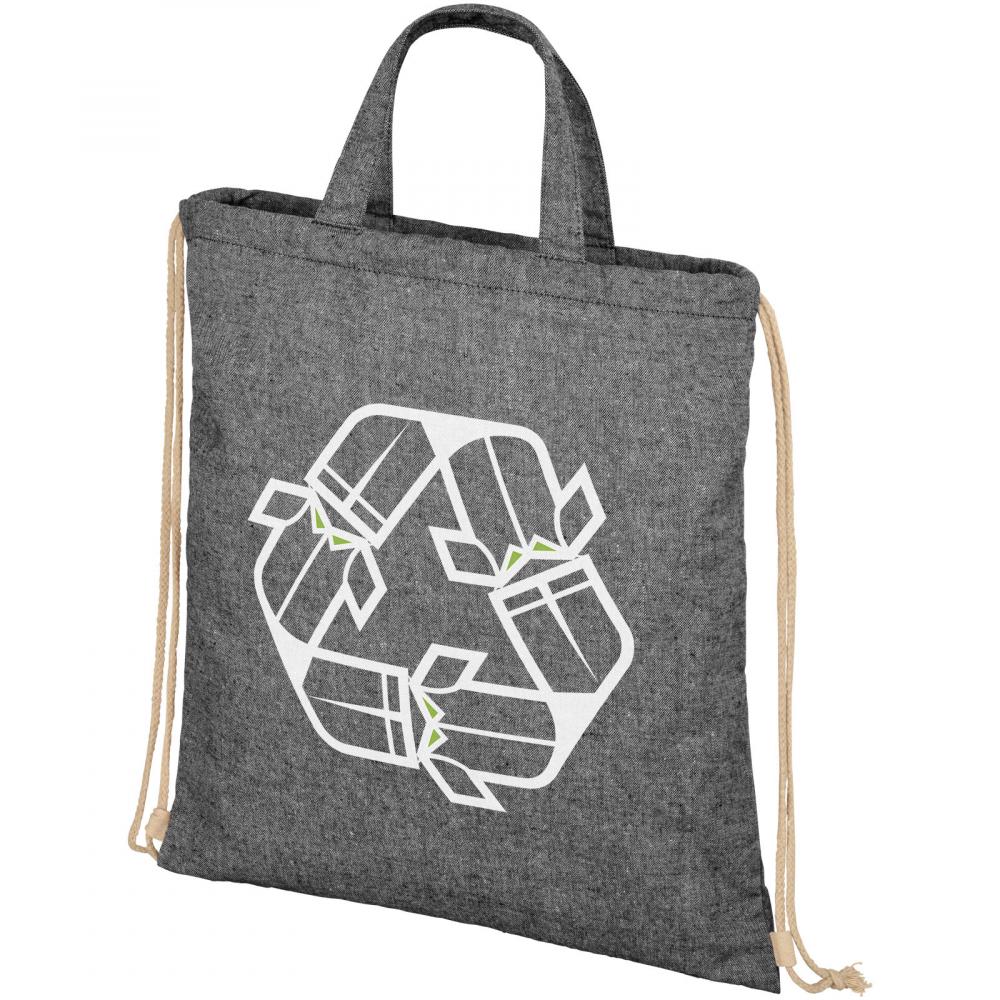 Сумка на шнурке, изготовленная из смеси переработанного хлопка и полиэстера плотностью 210 г/м². Переработанный хлопок производится из отходов, образующихся на текстильных фабриках в процессе раскроя. Большое основное отделение с хлопковым шнурком для закрытия. Оснащена двумя ручками с высотой отступа 14 см. Выдерживает вес до 5 кг. Возможны незначительные отклонения в цвете готового изделия из-за особенностей производственного процесса.