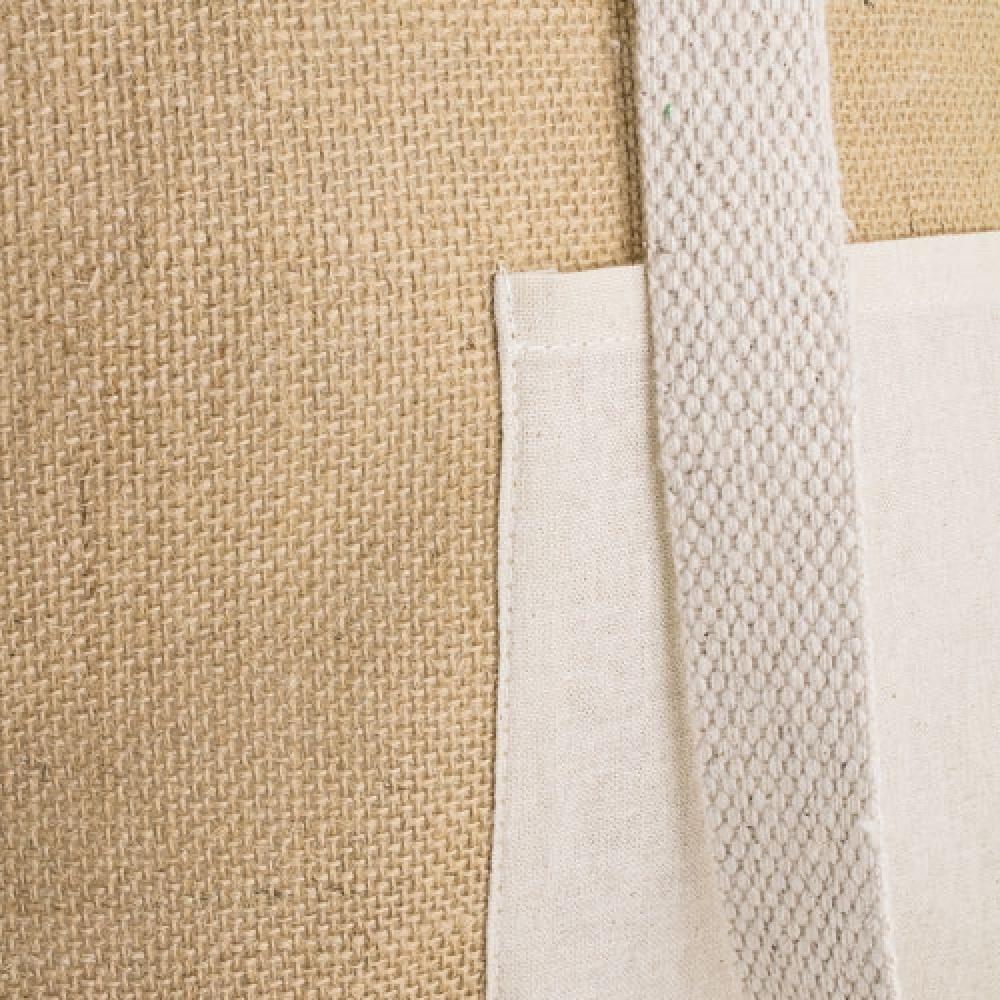 Изготовлен из хлопка и ультрапрочной ламинированной джутовой ткани. Включает внешний карман и ручки с повышенным комфортом.
