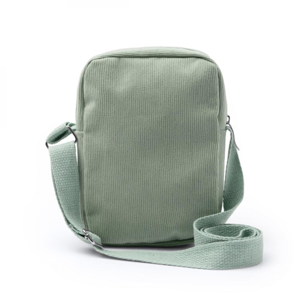 Сумка на плечо из вельветовой ткани с молнией и регулируемым ремешком в тон.