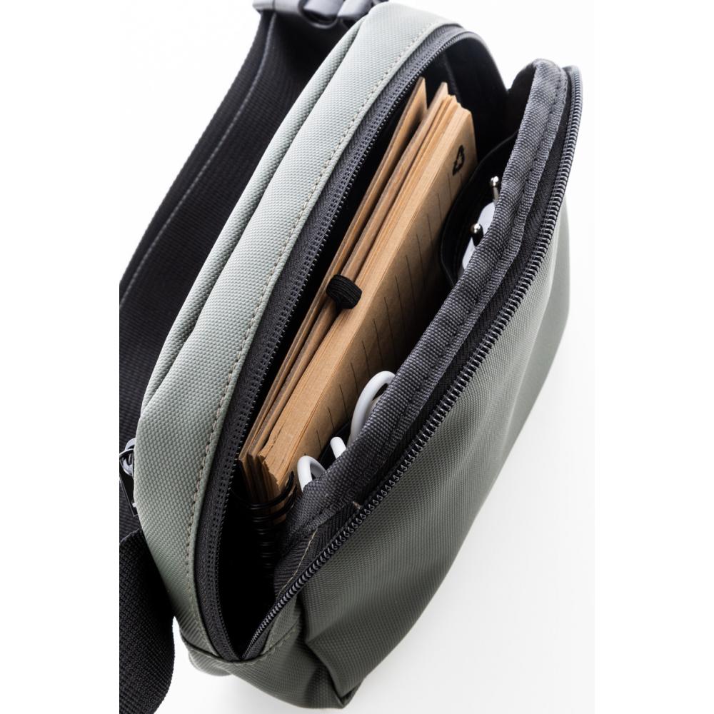 Водонепроницаемая поясная сумка из RPET с 2 молниями, сетчатыми карманами внутри и регулируемым ремнем. Покрытый ПУ 600D RPET полиэстер, с характерным ярлыком RPET.