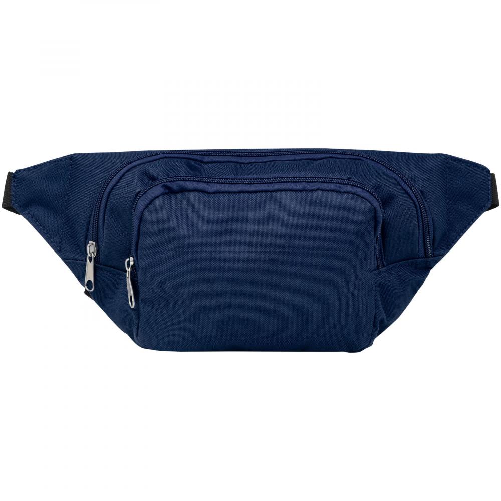 Сумка на пояс Santander с двумя отделениями. Два больших отделения на молнии. Регулируемый поясной ремень с пряжкой быстрого освобождения. Полиэстер 600D.